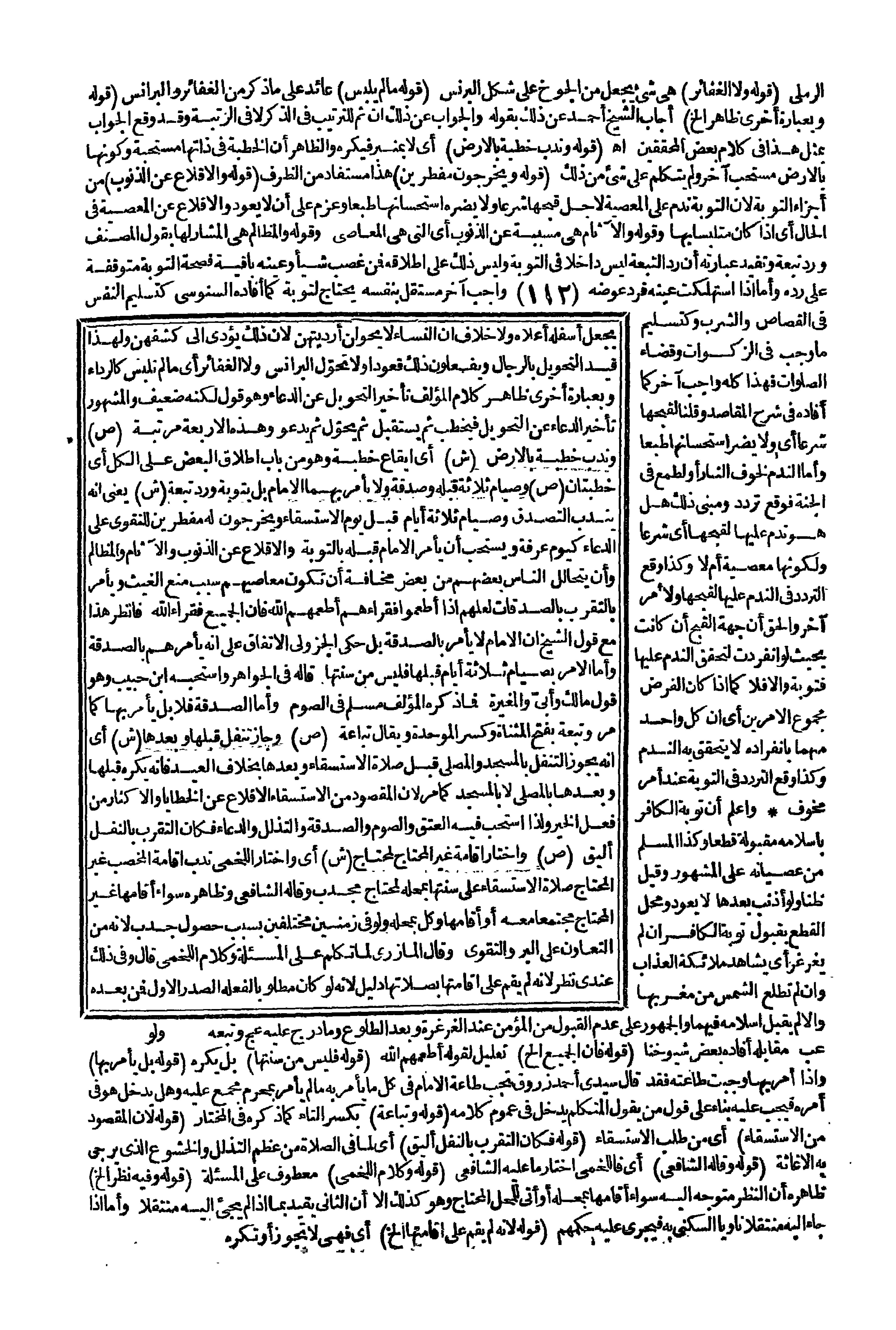 (قَوْلُهُ وَنُدِبَ خُطْبَةٌ بِالْأَرْضِ) أَيْ: لَا بِمِنْبَرٍ فَيُكْرَهُ، وَالظَّاهِرُ أَنَّ الْخُطْبَةَ فِي ذَاتِهَا مُسْتَحَبَّةٌ وَكَوْنُهَا بِالْأَرْضِ مُسْتَحَبٌّ آخَرُ، وَلَمْ يَتَكَلَّمْ عَلَى شَيْءٍ مِنْ ذَلِكَ (قَوْلُهُ وَيَخْرُجُونَ مُفْطِرِينَ) هَذَا مُسْتَفَادٌ مِنْ الظَّرْفِ (قَوْلُهُ وَالْإِقْلَاعِ عَنْ الذُّنُوبِ) مِنْ أَجْزَاءِ التَّوْبَةِ؛ لِأَنَّ التَّوْبَةَ نَدَمٌ عَلَى الْمَعْصِيَةِ لِأَجْلِ قُبْحِهَا شَرْعًا وَلَا يَضُرُّهُ اسْتِحْسَانُهَا طَبْعًا، وَعَزْمٌ عَلَى أَنْ لَا يَعُودَ، وَالْإِقْلَاعُ عَنْ الْمَعْصِيَةِ فِي الْحَالِ. أَيْ: إذَا كَانَ مُتَلَبِّسًا بِهَا. وَقَوْلُهُ: وَالْآثَامِ هِيَ مُسَبَّبَةٌ عَنْ الذُّنُوبِ أَيْ: الَّتِي هِيَ الْمَعَاصِي، وَقَوْلُهُ: وَالْمَظَالِمِ هِيَ الْمُشَارُ لَهَا بِقَوْلِ الْمُصَنِّفِ وَرَدِّ تَبِعَةٍ وَتُفِيدُ عِبَارَتُهُ أَنَّ رَدَّ التَّبِعَةِ لَيْسَ دَاخِلًا فِي التَّوْبَةِ، وَلَيْسَ ذَلِكَ عَلَى إطْلَاقِهِ فَمَنْ غَصَبَ شَيْئًا وَعَيْنُهُ بَاقِيَةٌ فَصِحَّةُ التَّوْبَةِ مُتَوَقِّفَةٌ عَلَى رَدِّهِ، وَأَمَّا إذَا اُسْتُهْلِكَتْ عَيْنُهُ فَرَدُّ عِوَضِهِ وَاجِبٌ آخَرُ مُسْتَقِلٌّ بِنَفْسِهِ يَحْتَاجُ لِتَوْبَةٍ - كَمَا أَفَادَهُ السَّنُوسِيُّ كَتَسْلِيمِ النَّفْسِ فِي الْقِصَاصِ وَالشِّرْبِ، وَكَتَسْلِيمِ مَا وَجَبَ فِي الزَّكَوَاتِ وَقَضَاءِ الصَّلَوَاتِ، فَهَذَا كُلُّهُ وَاجِبٌ آخَرُ كَمَا أَفَادَهُ فِي شَرْحِ الْمَقَاصِدِ. وَقُلْنَا لِقُبْحِهَا شَرْعًا أَيْ: وَلَا يَضُرُّ اسْتِحْسَانُهَا طَبْعًا، وَأَمَّا النَّدَمُ لِخَوْفِ النَّارِ أَوْ لِطَمَعٍ فِي الْجَنَّةِ فَوَقَعَ تَرَدُّدٌ، وَمَبْنَى ذَلِكَ: هَلْ هُوَ نَدَمٌ عَلَيْهَا لِقُبْحِهَا أَيْ شَرْعًا وَلِكَوْنِهَا مَعْصِيَةً أَمْ لَا؟ وَكَذَا وَقَعَ التَّرَدُّدُ فِي النَّدَمِ عَلَيْهَا لِقُبْحِهَا وَلِأَمْرٍ آخَرَ.