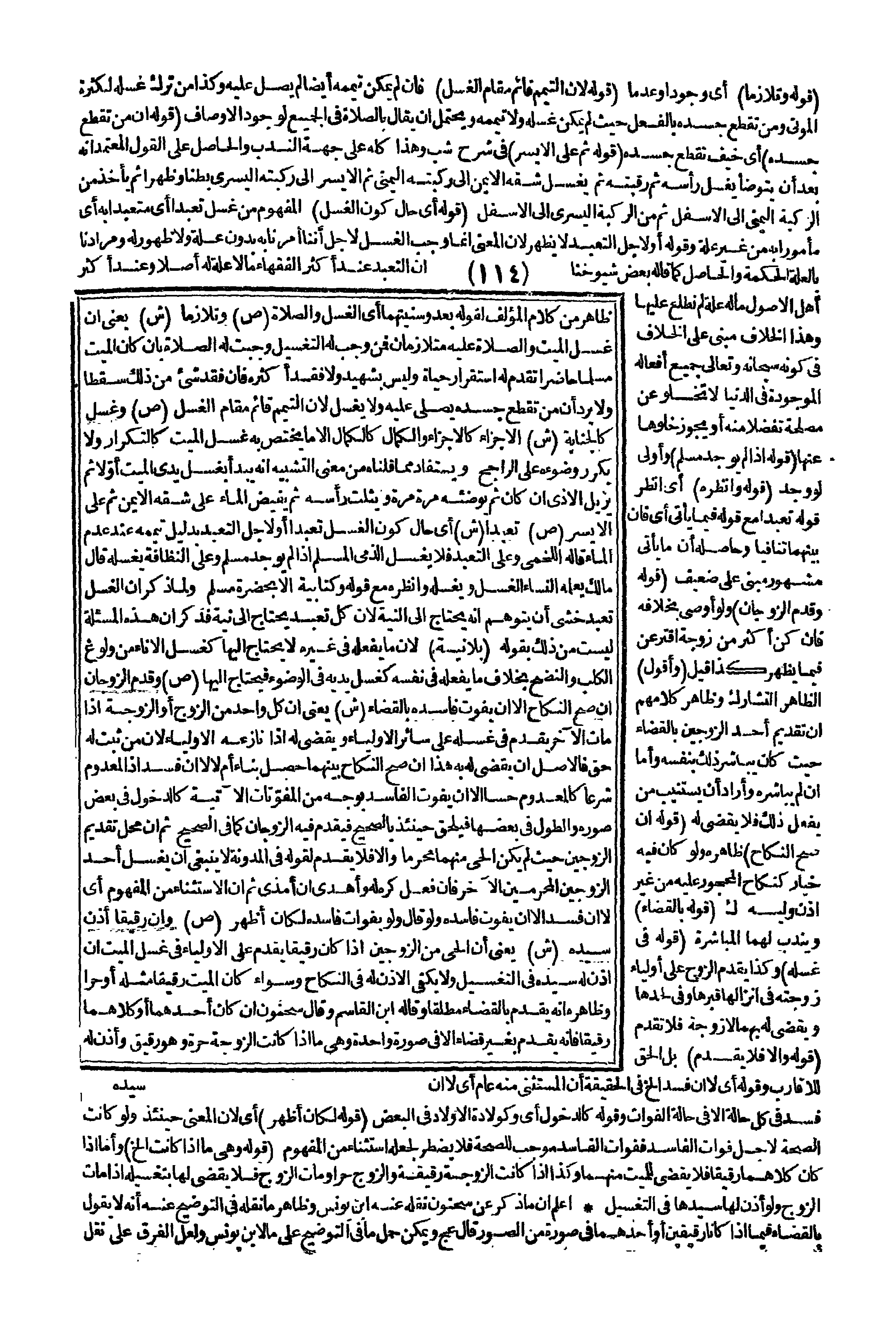 ـــــــــــــــــــــــــــــQقَوْلُهُ وَتَلَازَمَا) أَيْ: وُجُودًا وَعَدَمًا (قَوْلُهُ لِأَنَّ التَّيَمُّمَ قَائِمٌ مَقَامَ الْغُسْلِ) فَإِنْ لَمْ يُمْكِنْ تَيَمُّمُهُ أَيْضًا لَمْ يُصَلَّ عَلَيْهِ، وَكَذَا مَنْ تُرِكَ غُسْلُهُ لِكَثْرَةِ الْمَوْتَى، وَمَنْ تَقَطَّعَ جَسَدُهُ بِالْفِعْلِ حَيْثُ لَمْ يُمْكِنْ غُسْلُهُ وَلَا تَيَمُّمُهُ. وَيُحْتَمَلُ أَنْ يُقَالَ بِالصَّلَاةِ فِي الْجَمِيعِ لِوُجُودِ الْأَوْصَافِ (قَوْلُهُ أَنَّ مَنْ تَقَطَّعَ جَسَدُهُ) أَيْ: خِيفَ تَقَطُّعُ جَسَدِهِ (قَوْلُهُ ثُمَّ عَلَى الْأَيْسَرِ) فِي شَرْحِ شب وَهَذَا كُلُّهُ عَلَى جِهَةِ النَّدْبِ. وَالْحَاصِلُ عَلَى الْقَوْلِ الْمُعْتَمَدِ أَنَّهُ بَعْدَ أَنْ يَتَوَضَّأَ يَغْسِلُ رَأْسَهُ ثُمَّ رَقَبَتَهُ ثُمَّ يَغْسِلُ شِقَّهُ الْأَيْمَنَ إلَى رُكْبَتِهِ الْيُمْنَى ثُمَّ الْأَيْسَرَ إلَى رُكْبَتِهِ الْيُسْرَى بَطْنًا وَظَهْرًا ثُمَّ يَأْخُذُ مِنْ الرُّكْبَةِ الْيُمْنَى إلَى الْأَسْفَلِ ثُمَّ مِنْ الرُّكْبَةِ الْيُسْرَى إلَى الْأَسْفَلِ. (قَوْلُهُ أَيْ حَالَ كَوْنِ الْغُسْلِ) الْمَفْهُومُ مِنْ (غُسِّلَ تَعَبُّدًا) أَيْ: مُتَعَبَّدًا بِهِ أَيْ: مَأْمُورًا بِهِ مِنْ غَيْرِ عِلَّةٍ، وَقَوْلُهُ: أَوْ لِأَجْلِ التَّعَبُّدِ، لَا يَظْهَرُ لِأَنَّ الْمَعْنَى إنَّمَا وَجَبَ الْغُسْلُ لِأَجْلِ أَنَّنَا أُمِرْنَا بِهِ بِدُونِ عِلَّةٍ وَلَا ظُهُورٍ لَهُ، وَمُرَادُنَا بِالْعِلَّةِ الْحِكْمَةُ. وَالْحَاصِلُ كَمَا قَالَهُ بَعْضُ شُيُوخِنَا أَنَّ التَّعَبُّدَ عِنْدَ أَكْثَرِ الْفُقَهَاءِ مَا لَا عِلَّةَ لَهُ أَصْلًا، وَعِنْدَ أَكْثَرِ أَهْلِ الْأُصُولِ مَا لَهُ عِلَّةٌ لَمْ نَطَّلِعْ عَلَيْهَا. وَهَذَا الْخِلَافُ مَبْنِيٌّ عَلَى الْخِلَافِ فِي كَوْنِهِ سُبْحَانَهُ وَتَعَالَى جَمِيعُ أَفْعَالِهِ الْمَوْجُودَةِ فِي الدُّنْيَا لَا تَخْلُو عَنْ مَصْلَحَةٍ تَفَضُّلًا مِنْهُ، أَوْ يَجُوزُ خُلُوُّهَا عَنْهَا.