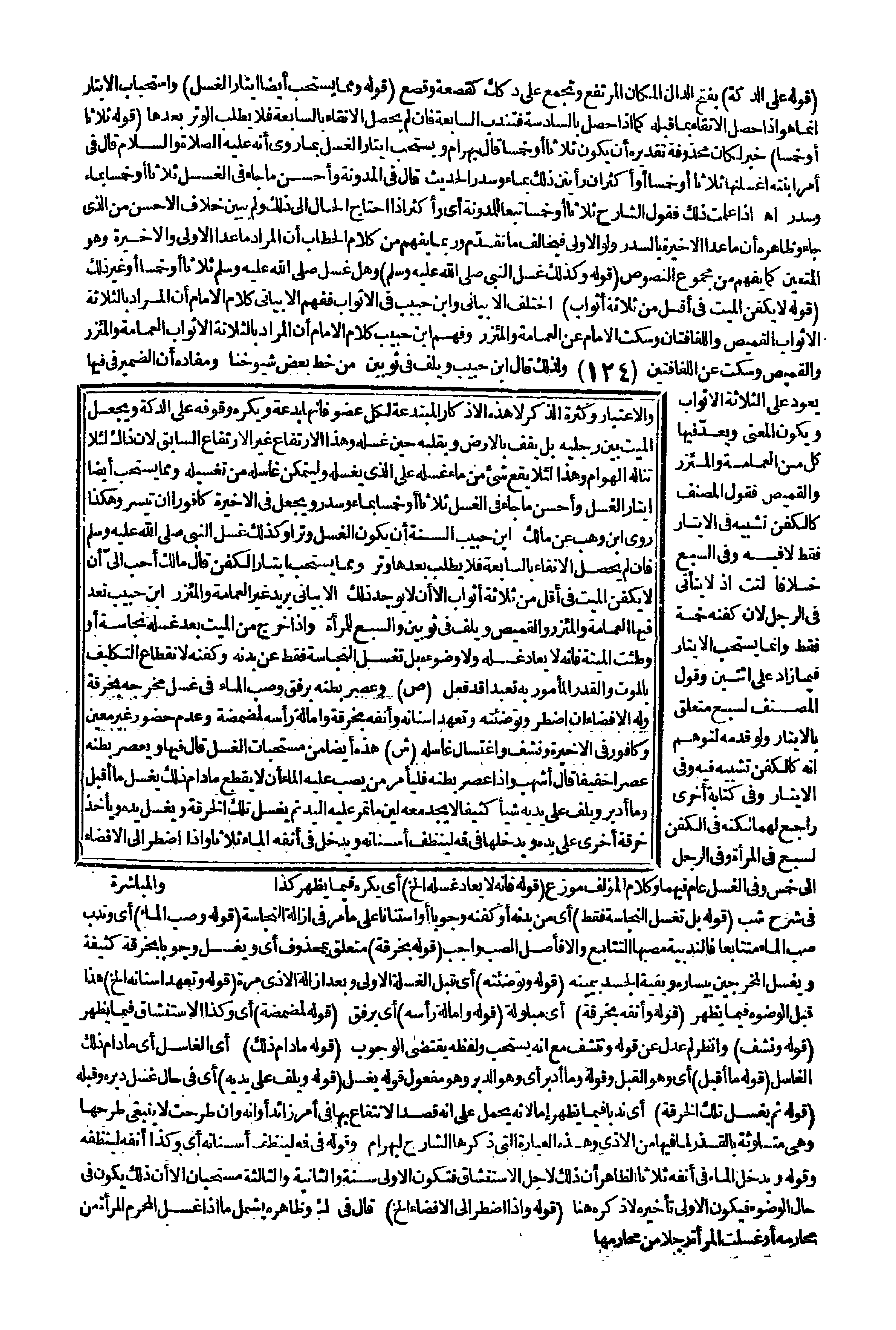 (قَوْلُهُ وَكَذَلِكَ غُسِّلَ النَّبِيُّ - صَلَّى اللَّهُ عَلَيْهِ وَسَلَّمَ -) وَهَلْ غُسِّلَ - صَلَّى اللَّهُ عَلَيْهِ وَسَلَّمَ - ثَلَاثًا أَوْ خَمْسًا أَوْ غَيْرَ ذَلِكَ. (قَوْلُهُ لَا يُكَفَّنُ الْمَيِّتُ فِي أَقَلَّ مِنْ ثَلَاثَةِ أَثْوَابٍ) اخْتَلَفَ الْإِبْيَانِيُّ وَابْنُ حَبِيبٍ فِي الْأَثْوَابِ فَفَهِمَ الْإِبْيَانِيُّ كَلَامَ الْإِمَامِ أَنَّ الْمُرَادَ بِالثَّلَاثَةِ الْأَثْوَابِ الْقَمِيصُ وَاللِّفَافَتَانِ، وَسَكَتَ الْإِمَامُ عَنْ الْعِمَامَةِ وَالْمِئْزَرِ، وَفَهِمَ ابْنُ حَبِيبٍ كَلَامَ الْإِمَامِ أَنَّ الْمُرَادَ بِالثَّلَاثَةِ الْأَثْوَابِ الْعِمَامَةُ وَالْمِئْزَرُ وَالْقَمِيصُ، وَسَكَتَ عَنْ اللِّفَافَتَيْنِ وَلِذَلِكَ قَالَ ابْنُ حَبِيبٍ: وَيُلَفُّ فِي ثَوْبَيْنِ مِنْ خَطِّ بَعْضِ شُيُوخِنَا، وَمُفَادُهُ أَنَّ الضَّمِيرَ فِي فِيهَا يَعُودُ عَلَى الثَّلَاثَةِ الْأَثْوَابِ وَيَكُونُ الْمَعْنَى: وَيُعَدُّ فِيهَا كُلٌّ مِنْ الْعِمَامَةِ وَالْمِئْزَرِ وَالْقَمِيصِ، فَقَوْلُ الْمُصَنِّفِ كَالْكَفَنِ تَشْبِيهٌ فِي الْإِيتَارِ فَقَطْ لَا فِيهِ وَفِي السَّبْعِ خِلَافًا لتت إذْ لَا يَتَأَتَّى فِي الرَّجُلِ لِأَنَّ كَفَنَهُ خَمْسَةٌ فَقَطْ، وَإِنَّمَا يُسْتَحَبُّ الْإِيتَارُ فِيمَا زَادَ عَلَى اثْنَيْنِ وَقَوْلُ الْمُصَنِّفِ لِسَبْعٍ، مُتَعَلِّقٌ بِالْإِيتَارِ، وَلَوْ قَدَّمَهُ لِتَوَهُّمِ أَنَّهُ كَالْكَفَنِ تَشْبِيهٌ فِيهِ وَفِي الْإِيتَارِ، وَفِي كِتَابَةٍ أُخْرَى رَاجِعٌ لَهُمَا لَكِنَّهُ فِي الْكَفَنِ لِسَبْعٍ فِي الْمَرْأَةِ وَفِي الرَّجُلِ إلَى خَمْسٍ وَفِي الْغُسْلِ عَامٌّ فِيهِمَا، وَكَلَامُ الْمُؤَلِّفِ مُوَزَّعٌ. (قَوْلُهُ فَإِنَّهُ لَا يُعَادُ غُسْلُهُ. . . إلَخْ) أَيْ: يُكْرَهُ فِيمَا يَظْهَرُ كَذَا فِي شَرْحِ شب. (قَوْلُهُ بَلْ تُغْسَلُ النَّجَاسَةُ فَقَطْ) أَيْ: مِنْ بَدَنِهِ أَوْ كَفَنِهِ وُجُوبًا أَوْ اسْتِنَانًا عَلَى مَا مَرَّ فِي إزَالَةِ النَّجَاسَةِ.