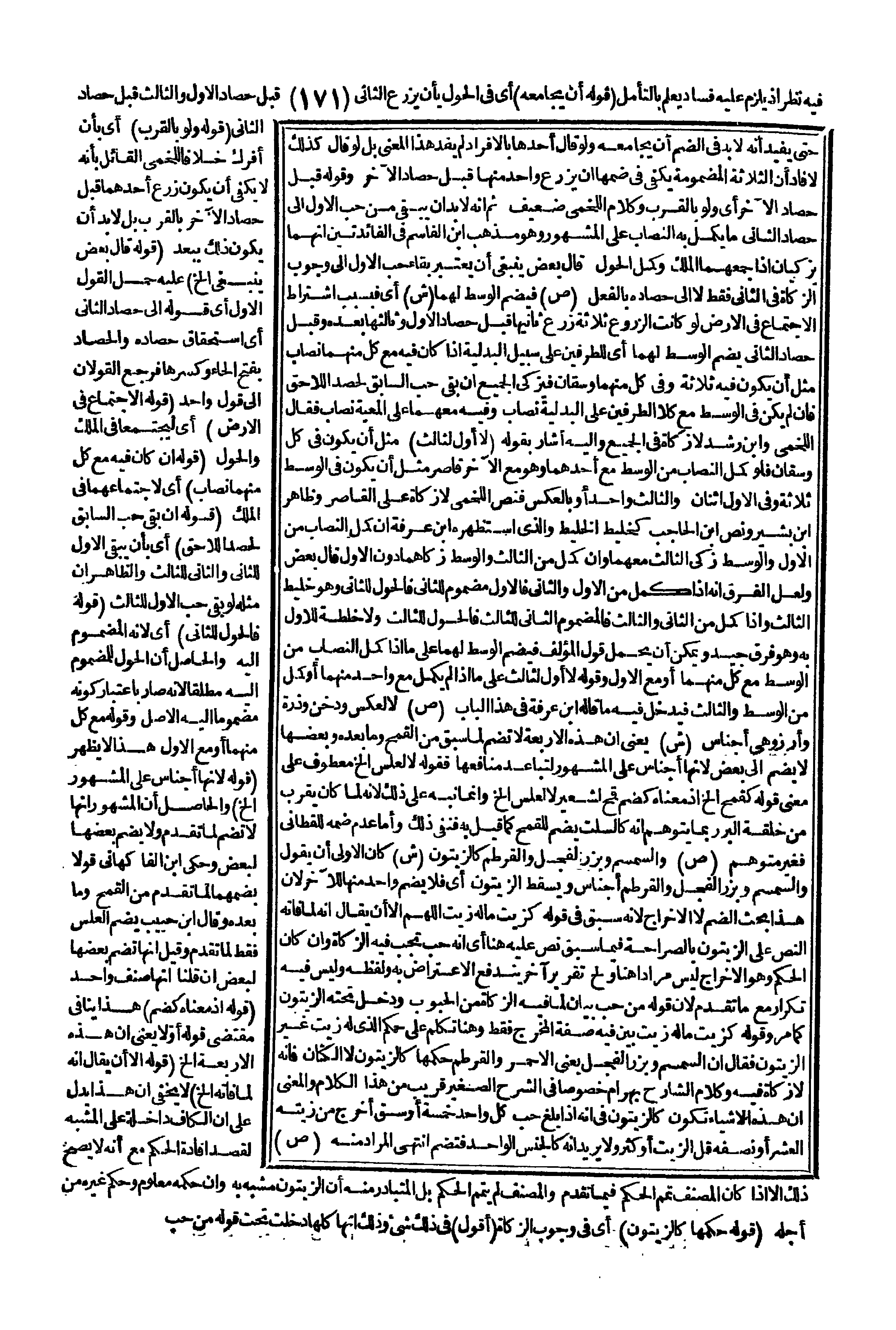 ـــــــــــــــــــــــــــــQفِيهِ نَظَرٌ إذْ يَلْزَمُ عَلَيْهِ فَسَادٌ يُعْلَمُ بِالتَّأَمُّلِ. (قَوْلُهُ: أَنْ يُجَامِعَهُ) أَيْ فِي الْحَوْلِ بِأَنْ يُزْرَعَ الثَّانِي قَبْلَ حَصَادِ الْأَوَّلِ وَالثَّالِثُ قَبْلَ حَصَادِ الثَّانِي. (قَوْلُهُ: وَلَوْ بِالْقُرْبِ) أَيْ بِأَنْ أُفْرِكَ خِلَافًا لِلَّخْمِيِّ الْقَائِلِ بِأَنَّهُ لَا يَكْفِي أَنْ يَكُونَ زَرْعُ أَحَدِهِمَا قَبْلَ حَصَادِ الْآخَرِ بِالْقُرْبِ، بَلْ لَا بُدَّ أَنْ يَكُونَ ذَلِكَ يَبْعُدُ. (قَوْلُهُ: قَالَ بَعْضٌ يَنْبَغِي. . . إلَخْ) عَلَيْهِ حُمِلَ الْقَوْلُ الْأَوَّلُ أَيْ قَوْلُهُ إلَى حَصَادِ الثَّانِي أَيْ اسْتِحْقَاقِ حَصَادِهِ وَالْحَصَادُ بِفَتْحِ الْحَاءِ وَكَسْرِهَا فَرَجَعَ الْقَوْلَانِ إلَى قَوْلٍ وَاحِدٍ (قَوْلُهُ: الِاجْتِمَاعِ فِي الْأَرْضِ) أَيْ لِيَجْتَمِعَا فِي الْمِلْكِ وَالْحَوْلِ. (قَوْلُهُ: إنْ كَانَ فِيهِ مَعَ كُلٍّ مِنْهُمَا نِصَابٌ) أَيْ لِاجْتِمَاعِهِمَا فِي الْمِلْكِ (قَوْلُهُ: إنْ بَقِيَ حَبُّ السَّابِقِ لِحَصْدِ اللَّاحِقِ) أَيْ بِأَنْ يَبْقَى الْأَوَّلُ لِلثَّانِي وَالثَّانِي لِلثَّالِثِ وَالظَّاهِرُ أَنَّ مِثْلَهُ لَوْ بَقِيَ حَبُّ الْأَوَّلِ لِلثَّالِثِ (قَوْلُهُ: فَالْحَوْلُ لِلثَّانِي) أَيْ لِأَنَّهُ الْمَضْمُومُ إلَيْهِ وَالْحَاصِلُ أَنَّ الْحَوْلَ لِلْمَضْمُومِ إلَيْهِ مُطْلَقًا لِأَنَّهُ صَارَ بِاعْتِبَارِ كَوْنِهِ مَضْمُومًا إلَيْهِ الْأَصْلُ وَقَوْلُهُ: مَعَ كُلٍّ مِنْهُمَا أَوْ مَعَ الْأَوَّلِ هَذَا لَا يَظْهَرُ