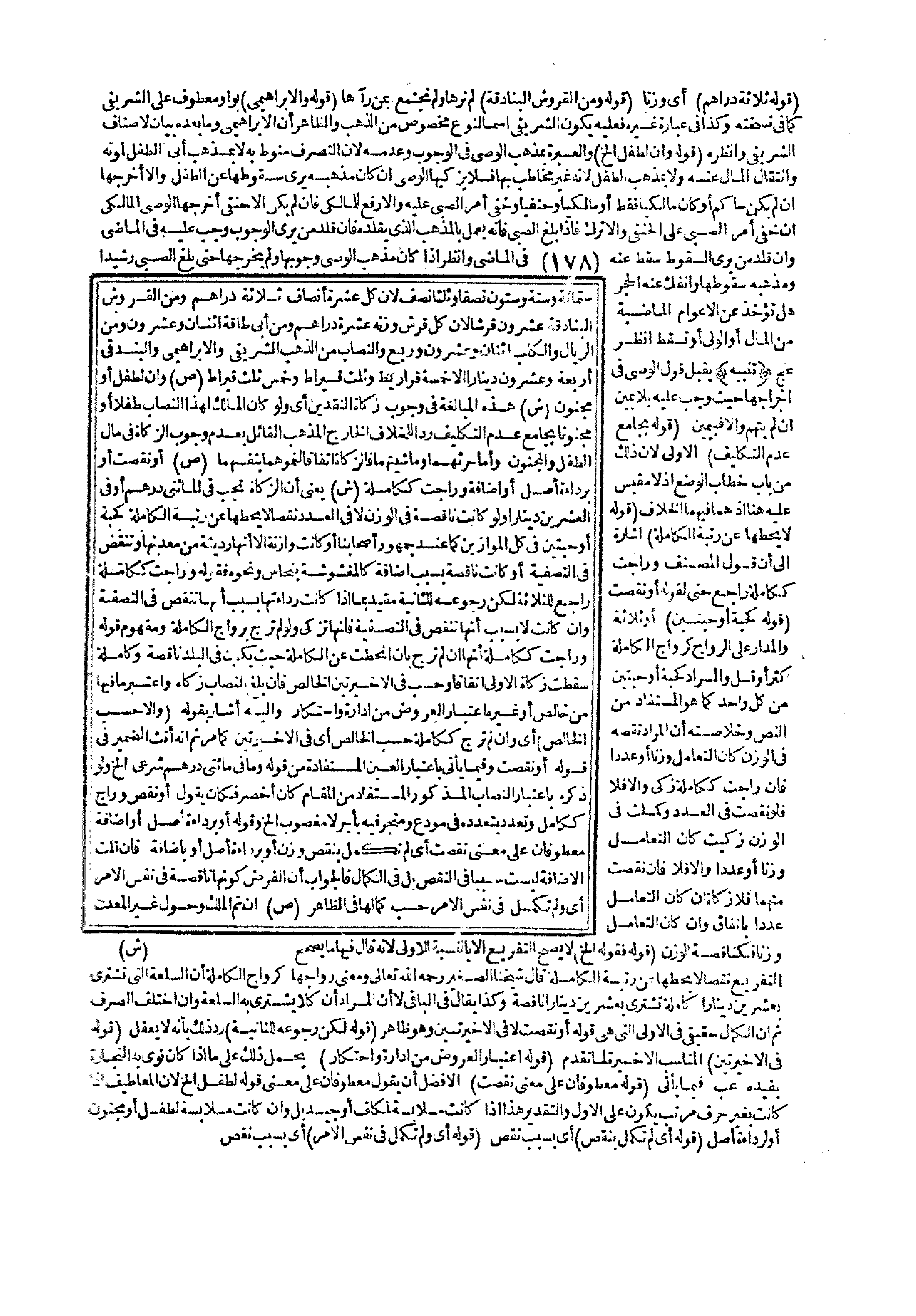 (قَوْلُهُ: لَكِنَّ رُجُوعَهُ لِلثَّانِيَةِ) رُدَّ ذَلِكَ بِأَنَّهُ لَا يُعْقَلُ. (قَوْلُهُ: فِي الْأَخِيرَتَيْنِ) الْمُنَاسِبُ الْأَخِيرَةِ لِمَا تَقَدَّمَ. (قَوْلُهُ اعْتِبَارَ الْعُرُوضِ وَمِنْ إدَارَةٍ وَاحْتِكَارٍ) يُحْمَلُ ذَلِكَ عَلَى مَا إذَا كَانَ نَوَى بِهِ التِّجَارَةَ يُفِيدُ عب فِيمَا يَأْتِي (قَوْلُهُ: مَعْطُوفَانِ عَلَى مَعْنَى نَقَصَتْ) الْأَفْضَلُ أَنْ يَقُولَ مَعْطُوفَانِ عَلَى مَعْنَى قَوْلِهِ لِطِفْلٍ. . . إلَخْ؛ لِأَنَّ الْمَعَاطِيفَ إذَا كَانَتْ بِغَيْرِ حَرْفٍ مُرَتِّبٍ يَكُونُ عَلَى الْأَوَّلِ وَالتَّقْدِيرُ هَذَا إذَا كَانَتْ مُلَابِسَةً لِمُكَلَّفٍ أَوْ جَيِّدٍ، بَلْ، وَإِنْ كَانَتْ مُلَابِسَةً لِطِفْلٍ، أَوْ مَجْنُونٍ أَوْ لِرَدَاءَةِ أَصْلٍ. (قَوْلُهُ: أَيْ لَمْ تُكَمَّلْ بِنَقْصٍ) أَيْ بِسَبَبِ نَقْصٍ. (قَوْلُهُ: أَيْ وَلَمْ تُكَمَّلْ فِي نَفْسِ الْأَمْرِ) أَيْ بِسَبَبِ نَقْصٍ