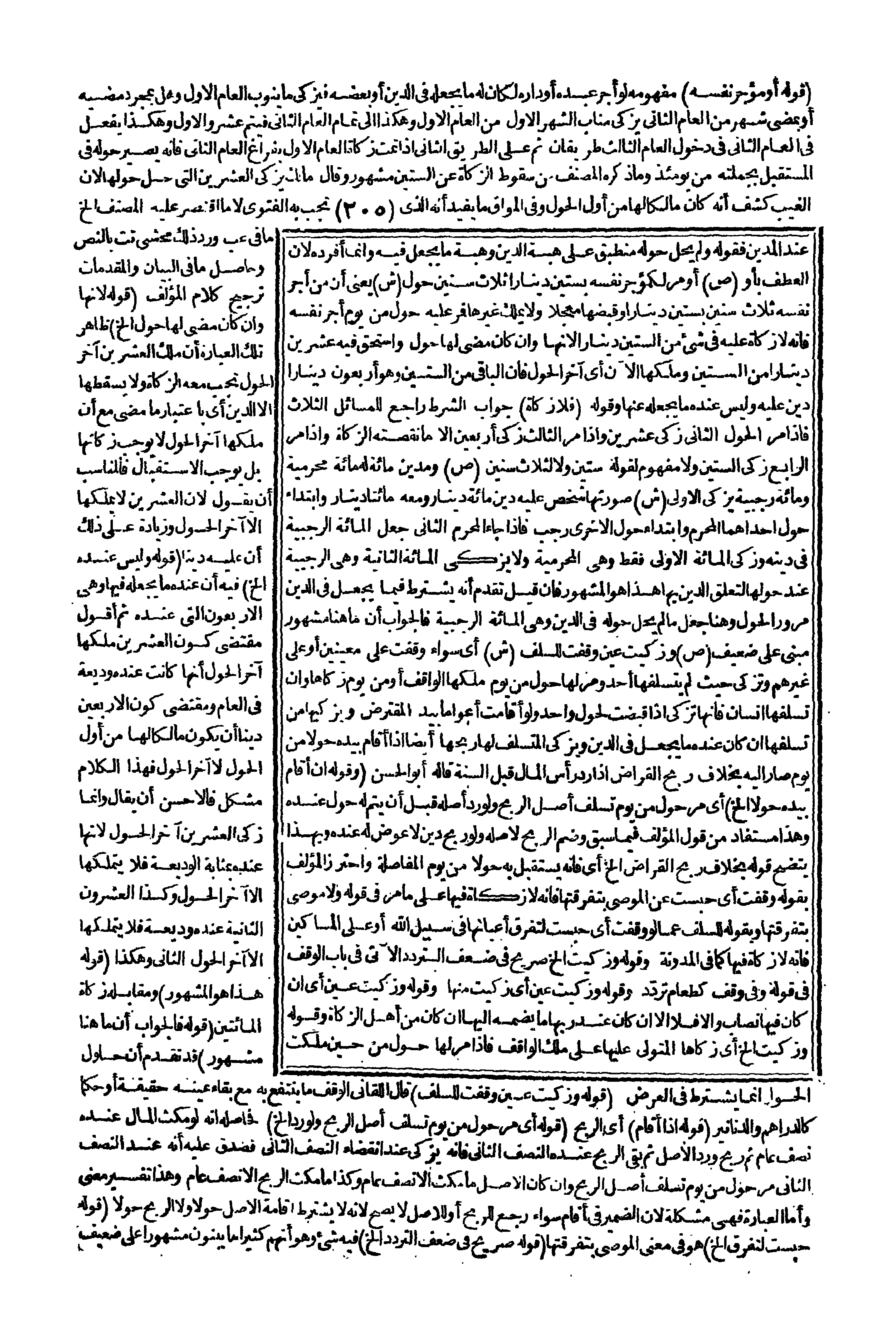 (قَوْلُهُ: وَزُكِّيَتْ عَيْنٌ وُقِفَتْ لِلسَّلَفِ) قَالَ اللَّقَانِيِّ الْوَقْفُ مَا يُنْتَفَعُ بِهِ مَعَ بَقَاءِ عَيْنِهِ حَقِيقَةً، أَوْ حُكْمًا كَالدَّرَاهِمِ وَالدَّنَانِيرِ. (قَوْلُهُ: إذَا أَقَامَ) أَيْ الرِّبْحُ.