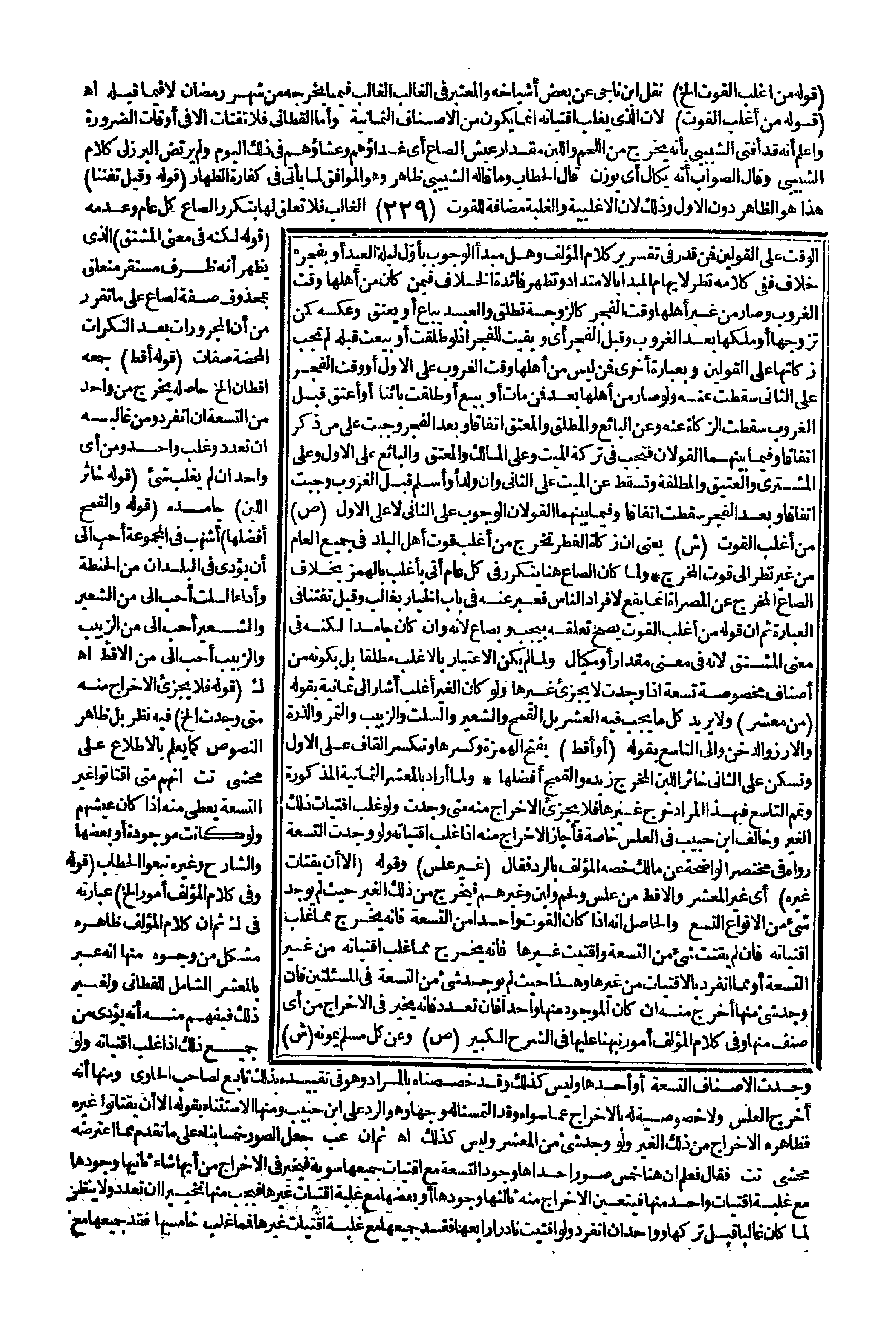 وَلَمَّا أَرَادَ بِالْمُعَشَّرِ الثَّمَانِيَةَ الْمَذْكُورَةَ وَتَمَّمَ التَّاسِعَ فَبِهَذَا الْمُرَادِ خَرَجَ غَيْرُهَا فَلَا يُجْزِئُ الْإِخْرَاجُ مِنْهُ مَتَى وُجِدَتْ، وَلَوْ غَلَبَ اقْتِيَاتُ ذَلِكَ الْغَيْرِ، وَخَالَفَ ابْنُ حَبِيبٍ فِي الْعَلَسِ خَاصَّةً فَأَجَازَ الْإِخْرَاجَ مِنْهُ إذَا غَلَبَ اقْتِيَاتُهُ، وَلَوْ وُجِدَتْ التِّسْعَةُ رَوَاهُ فِي مُخْتَصَرِ الْوَاضِحَةِ عَنْ مَالِكٍ خَصَّهُ الْمُؤَلِّفُ بِالرَّدِّ فَقَالَ: (غَيْرِ عَلَسٍ) وَقَوْلُهُ: (إلَّا أَنْ يَقْتَاتَ غَيْرَهُ) أَيْ: غَيْرَ الْمُعَشَّرِ وَالْأَقِطِ مِنْ عَلَسٍ وَلَحْمٍ وَلَبَنٍ وَغَيْرِهِمْ فَيُخْرِجُ مِنْ ذَلِكَ الْغَيْرِ حَيْثُ لَمْ يُوجَدْ شَيْءٌ مِنْ الْأَنْوَاعِ التِّسْعِ، وَالْحَاصِلُ أَنَّهُ إذَا كَانَ الْقُوتُ وَاحِدًا مِنْ التِّسْعَةِ فَإِنَّهُ يُخْرِجُ مِمَّا غَلَبَ اقْتِيَاتُهُ، فَإِنْ لَمْ يُقْتَتْ شَيْءٌ مِنْ التِّسْعَةِ وَاقْتِيتَ غَيْرُهَا فَإِنَّهُ يُخْرِجُ مِمَّا غَلَبَ اقْتِيَاتُهُ مِنْ غَيْرِ التِّسْعَةِ، أَوْ مِمَّا انْفَرَدَ بِالِاقْتِيَاتِ مِنْ غَيْرِهَا وَهَذَا حَيْثُ لَمْ يُوجَدْ شَيْءٌ مِنْ التِّسْعَةِ فِي الْمَسْأَلَتَيْنِ، فَإِنْ وُجِدَ شَيْءٌ مِنْهَا أَخْرَجَ مِنْهُ إنْ كَانَ الْمَوْجُودُ مِنْهَا وَاحِدًا، فَإِنْ تَعَدَّدَ فَإِنَّهُ يُخَيَّرُ فِي الْإِخْرَاجِ مِنْ أَيِّ صِنْفٍ مِنْهَا، وَفِي كَلَامِ الْمُؤَلِّفِ أُمُورٌ نَبَّهْنَا عَلَيْهَا فِي الشَّرْحِ الْكَبِيرِ