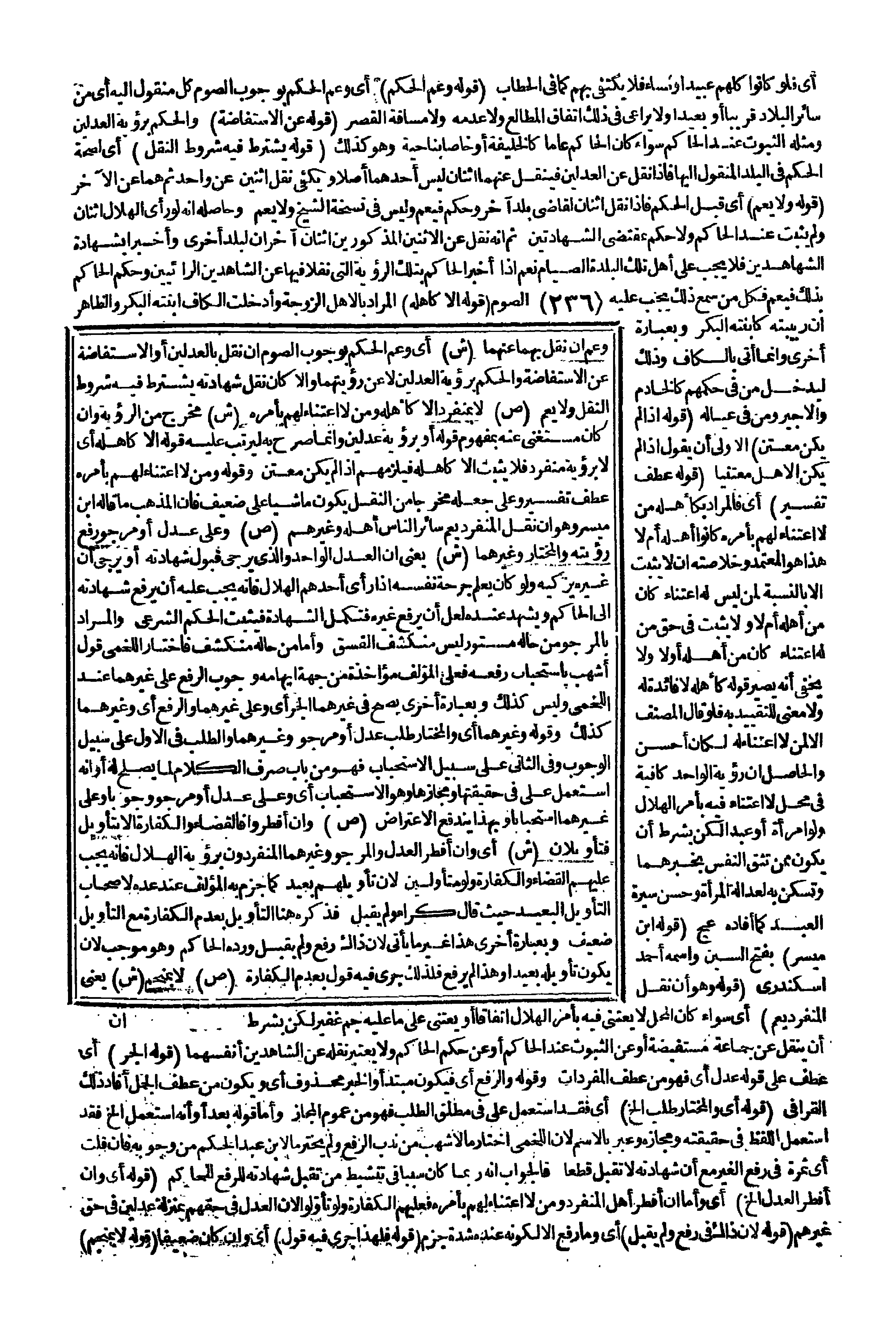 ـــــــــــــــــــــــــــــQأَيْ: فَلَوْ كَانُوا كُلُّهُمْ عَبِيدًا وَنِسَاءً فَلَا يُكْتَفَى بِهِمْ كَمَا فِي الْحَطَّابِ (قَوْلُهُ: وَعَمَّ الْحُكْمُ) أَيْ: وَعَمَّ الْحُكْمُ بِوُجُوبِ الصَّوْمِ كُلَّ مَنْقُولٍ إلَيْهِ أَيْ: مِنْ سَائِرِ الْبِلَادِ قَرِيبًا، أَوْ بَعِيدًا وَلَا يُرَاعَى فِي ذَلِكَ اتِّفَاقُ الْمَطَالِعِ وَلَا عَدَمُهُ وَلَا مَسَافَةُ الْقَصْرِ (قَوْلُهُ: عَنْ الِاسْتِفَاضَةِ) وَالْحُكْمِ بِرُؤْيَةِ الْعَدْلَيْنِ، وَمِثْلُهُ الثُّبُوتُ عِنْدَ الْحَاكِمِ سَوَاءٌ كَانَ الْحَاكِمُ عَامًّا كَالْخَلِيفَةِ، أَوْ خَاصًّا بِنَاحِيَةٍ وَهُوَ كَذَلِكَ (قَوْلُهُ: يُشْتَرَطُ فِيهِ شُرُوطُ النَّقْلِ) أَيْ: لِصِحَّةِ الْحُكْمِ فِي الْبَلَدِ الْمَنْقُولِ إلَيْهَا فَإِذَا نُقِلَ عَنْ الْعَدْلَيْنِ فَيَنْقُلُ عَنْهُمَا اثْنَانِ لَيْسَ أَحَدُهُمَا أَصْلًا، وَيَكْفِي نَقْلُ اثْنَيْنِ عَنْ وَاحِدٍ، ثُمَّ هُمَا عَنْ الْآخَرِ (قَوْلُهُ: وَلَا يَعُمُّ) أَيْ: قَبْلَ الْحُكْمِ فَإِذَا نَقَلَ اثْنَانِ لِقَاضِي بَلَدٍ آخَرَ وَحَكَمَ فَيَعُمُّ، وَلَيْسَ فِي نُسْخَةِ الشَّيْخِ وَلَا يَعُمُّ، وَحَاصِلُهُ أَنَّهُ لَوْ رَأَى الْهِلَالَ اثْنَانِ وَلَمْ يَثْبُتْ عِنْدَ الْحَاكِمِ وَلَا حَكَمَ بِمُقْتَضَى الشَّهَادَتَيْنِ، ثُمَّ إنَّهُ نَقَلَ عَنْ الِاثْنَيْنِ الْمَذْكُورَيْنِ اثْنَانِ آخَرَانِ لِبَلَدٍ أُخْرَى وَأَخْبَرَا بِشَهَادَةِ الشَّاهِدَيْنِ فَلَا يَجِبُ عَلَى أَهْلِ تِلْكَ الْبَلْدَةِ الصِّيَامُ، نَعَمْ إذَا أُخْبِرَ الْحَاكِمُ بِتِلْكَ الرُّؤْيَةِ الَّتِي نَقَلَا فِيهَا عَنْ الشَّاهِدَيْنِ الرَّائِيَيْنِ وَحَكَمَ الْحَاكِمُ بِذَلِكَ فَيَعُمُّ فَكُلُّ مَنْ سَمِعَ ذَلِكَ يَجِبُ عَلَيْهِ الصَّوْمُ.