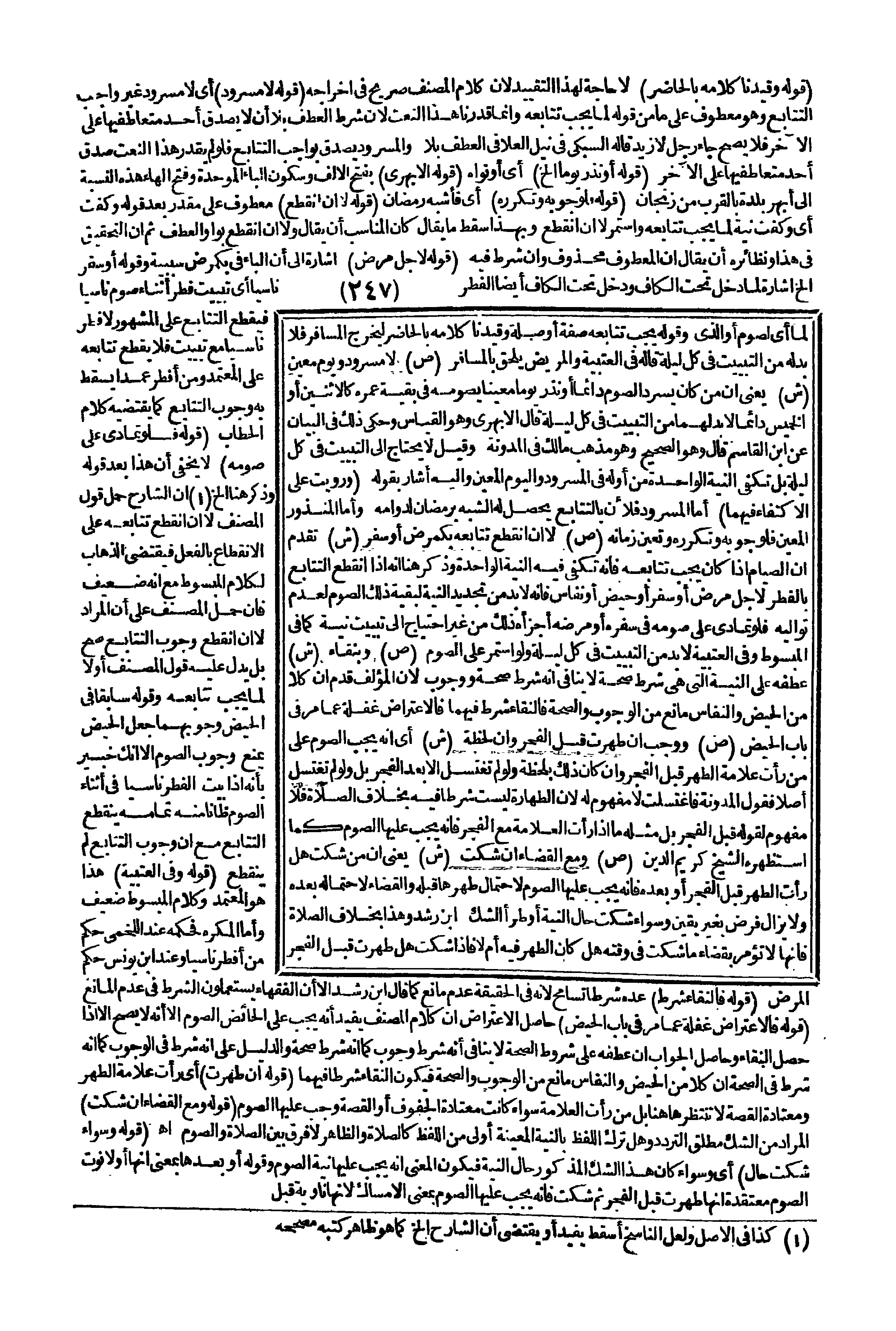 (قَوْلُهُ: فَالنَّقَاءُ شَرْطٌ) عَدَّهُ شَرْطًا تَسَامُحٌ؛ لِأَنَّهُ فِي الْحَقِيقَةِ عَدَمُ مَانِعٍ كَمَا قَالَ ابْنُ رُشْدٍ إلَّا أَنَّ الْفُقَهَاءَ يَسْتَعْمِلُونَ الشَّرْطَ فِي عَدَمِ الْمَانِعِ (قَوْلُهُ فَالِاعْتِرَاضُ غَفْلَةٌ عَمَّا مَرَّ فِي بَابِ الْحَيْضِ) حَاصِلُ الِاعْتِرَاضِ أَنَّ كَلَامَ الْمُصَنِّفِ يُفِيدُ أَنَّهُ يَجِبُ عَلَى الْحَائِضِ الصَّوْمُ إلَّا أَنَّهُ لَا يَصِحُّ إلَّا إذَا حَصَلَ النَّقَاءُ، وَحَاصِلُ الْجَوَابِ أَنَّ عَطْفَهُ عَلَى شُرُوطِ الصِّحَّةِ لَا يُنَافِي أَنَّهُ شَرْطُ وُجُوبٍ كَمَا أَنَّهُ شَرْطُ صِحَّةٍ، وَالدَّلِيلُ عَلَى أَنَّهُ شَرْطٌ فِي الْوُجُوبِ كَمَا أَنَّهُ شَرْطٌ فِي الصِّحَّةِ أَنَّ كُلًّا مِنْ الْحَيْضِ وَالنِّفَاسِ مَانِعٌ مِنْ الْوُجُوبِ وَالصِّحَّةِ فَيَكُونُ النَّقَاءُ شَرْطًا فِيهِمَا (قَوْلُهُ إنْ طَهُرَتْ) أَيْ: رَأَتْ عَلَامَةَ الطُّهْرِ، وَمُعْتَادَةُ الْقَصَّةِ لَا تَنْتَظِرُ هَاهُنَا بَلْ مَنْ رَأَتْ الْعَلَامَةَ سَوَاءٌ كَانَتْ مُعْتَادَةَ الْجُفُوفِ، أَوْ الْقَصَّةِ وَجَبَ عَلَيْهَا الصَّوْمُ (قَوْلُهُ: وَمَعَ الْقَضَاءِ إنْ شَكَّتْ) الْمُرَادُ مِنْ الشَّكِّ مُطْلَقُ التَّرَدُّدِ، وَهَلْ تَرْكُ اللَّفْظِ بِالنِّيَّةِ الْمُعَيَّنَةِ أَوْلَى مِنْ اللَّفْظِ كَالصَّلَاةِ:، وَالظَّاهِرُ لَا فَرْقَ بَيْنَ الصَّلَاةِ وَالصَّوْمِ اهـ.