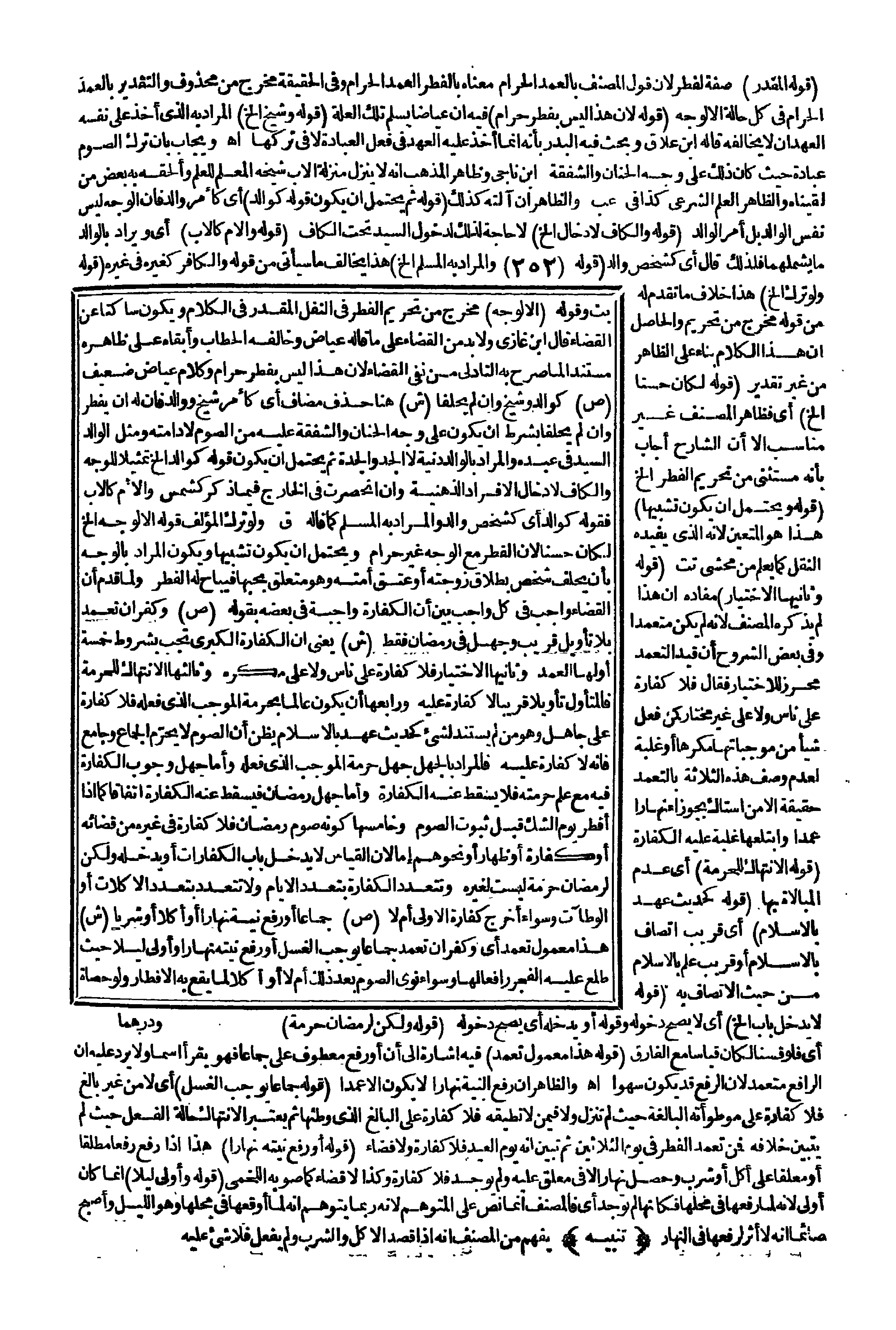 ـــــــــــــــــــــــــــــQقَوْلُهُ: الْمُقَدَّرِ) صِفَةٌ لِفِطْرٍ؛ لِأَنَّ قَوْلَ الْمُصَنِّفِ بِالْعَمْدِ الْحَرَامِ مَعْنَاهُ بِالْفِطْرِ الْعَمْدِ الْحَرَامِ، وَفِي الْحَقِيقَةِ مُخْرَجٌ مِنْ مَحْذُوفٍ وَالتَّقْدِيرُ بِالْعَمْدِ الْحَرَامِ فِي كُلِّ حَالَةٍ إلَّا لِوَجْهٍ (قَوْلُهُ:؛ لِأَنَّ هَذَا لَيْسَ بِفِطْرٍ حَرَامٍ) فِيهِ أَنَّ عِيَاضًا يُسَلِّمُ تِلْكَ الْعِلَّةَ (قَوْلُهُ: وَشَيْخٍ إلَخْ) الْمُرَادُ بِهِ الَّذِي أَخَذَ عَلَى نَفْسِهِ الْعَهْدَ أَنْ لَا يُخَالِفَهُ قَالَهُ ابْنُ عَلَاقٍ وَبَحَثَ فِيهِ الْبَدْرُ بِأَنَّهُ إنَّمَا أُخِذَ عَلَيْهِ الْعَهْدُ فِي فِعْلِ الْعِبَادَةِ لَا فِي تَرْكِهَا اهـ.