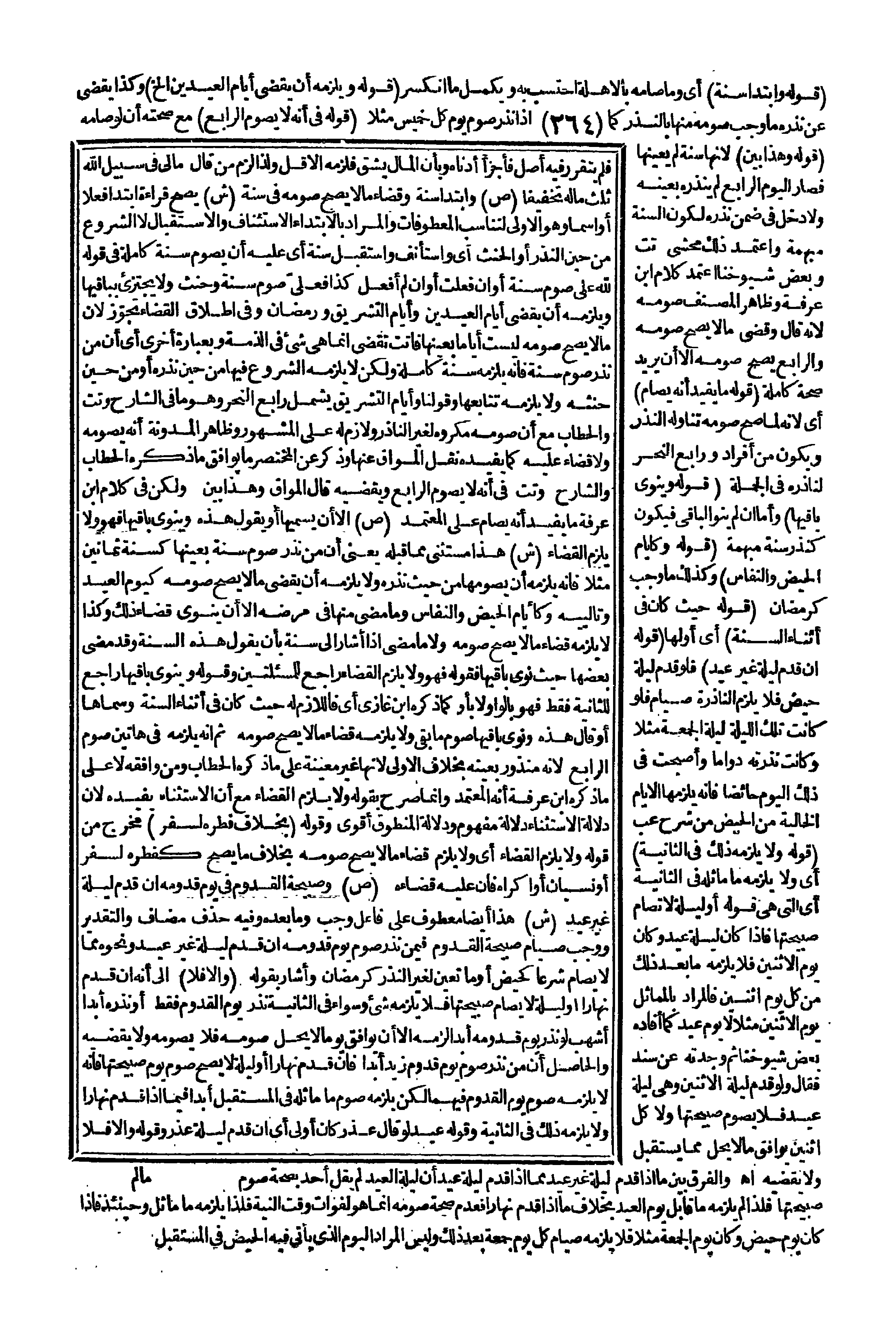 وَالْفَرْقُ بَيْنَ مَا إذَا قَدَّمَ لَيْلَةً غَيْرَ عِيدٍ مِمَّا إذَا قَدَّمَ لَيْلَةَ عِيدٍ أَنَّ لَيْلَةَ الْعِيدِ لَمْ يَقُلْ أَحَدٌ بِصِحَّةِ صَوْمِ صَبِيحَتِهَا فَلِذَا لَمْ يَلْزَمْهُ مَا قَابَلَ يَوْمَ الْعِيدِ بِخِلَافِ مَا إذَا قَدَّمَ نَهَارًا، فَعَدَمُ صِحَّةِ صَوْمِهِ إنَّمَا هُوَ لِفَوَاتِ وَقْتِ النِّيَّةِ فَلِذَا يَلْزَمُهُ مَا مَاثَلَ وَحِينَئِذٍ فَإِذَا كَانَ يَوْمَ حَيْضٍ وَكَانَ يَوْمَ الْجُمُعَةِ مَثَلًا فَلَا يَلْزَمُهُ صِيَامُ كُلِّ يَوْمِ جُمُعَةٍ بَعْدَ ذَلِكَ، وَلَيْسَ الْمُرَادُ الْيَوْمَ الَّذِي يَأْتِي فِيهِ الْحَيْضُ فِي الْمُسْتَقْبَلِ