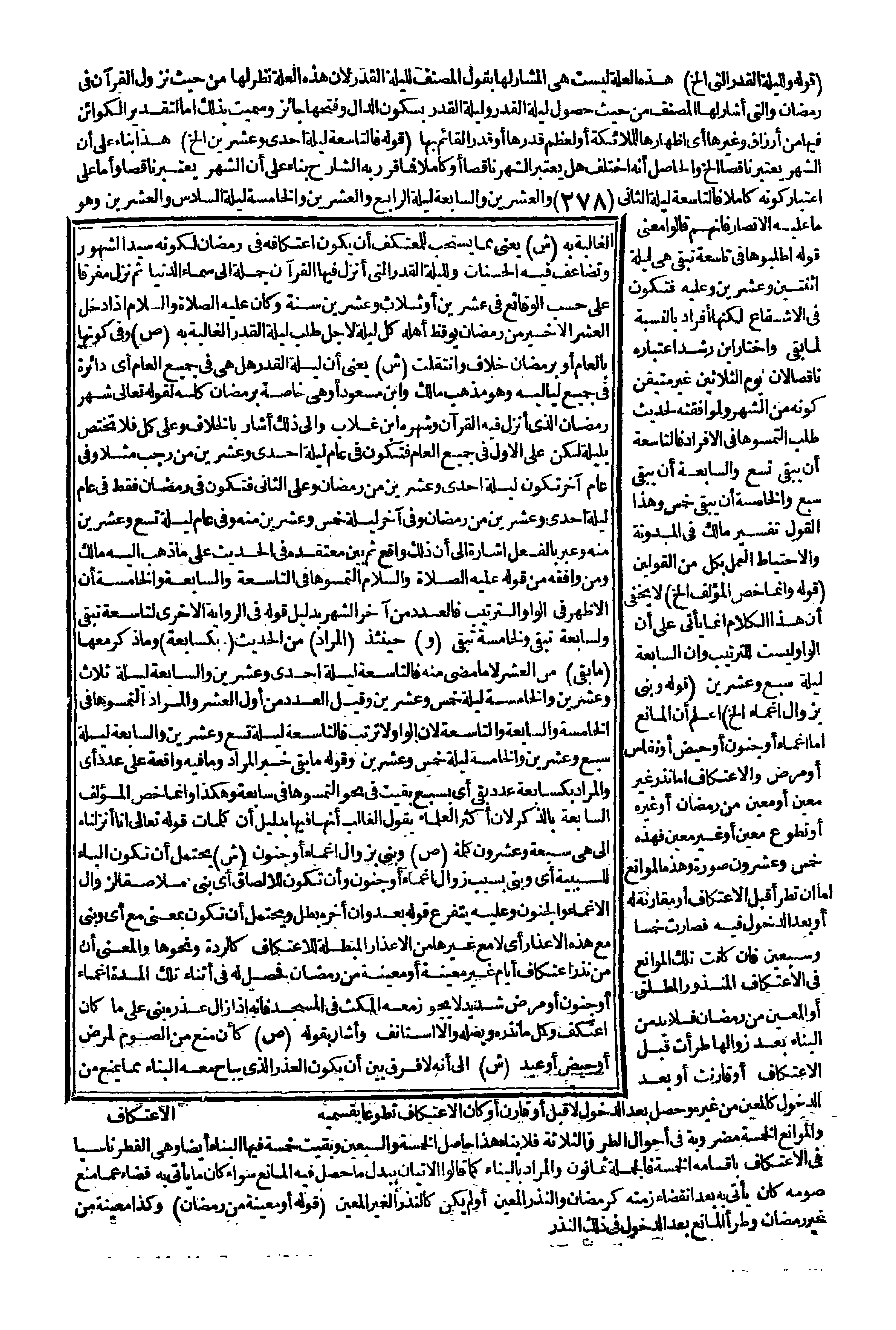 ـــــــــــــــــــــــــــــQ (قَوْلُهُ وَلِلَيْلَةِ الْقَدْرِ الَّتِي إلَخْ) هَذِهِ الْعِلَّةُ لَيْسَتْ هِيَ الْمُشَارُ لَهَا بِقَوْلِ الْمُصَنِّفِ لِلَيْلَةِ الْقَدْرِ؛ لِأَنَّ هَذِهِ الْعِلَّةَ نُظِرَ لَهَا مِنْ حَيْثُ نُزُولُ الْقُرْآنِ فِي رَمَضَانَ وَاَلَّتِي أَشَارَ لَهَا الْمُصَنِّفُ مِنْ حَيْثُ حُصُولُ لَيْلَةِ الْقَدْرِ، وَلَيْلَةُ الْقَدْرِ بِسُكُونِ الدَّالِ، وَفَتْحُهَا جَائِزٌ وَسُمِّيَتْ بِذَلِكَ إمَّا لِتَقْدِيرِ الْكَوَائِنِ فِيهَا مِنْ أَرْزَاقٍ وَغَيْرِهَا أَيْ: إظْهَارُهَا لِلْمَلَائِكَةِ، أَوْ لِعِظَمِ قَدْرِهَا، أَوْ قَدْرِ الْقَائِمِ بِهَا (قَوْلُهُ: فَالتَّاسِعَةُ لَيْلَةُ إحْدَى وَعِشْرِينَ إلَخْ) هَذَا بِنَاءً عَلَى أَنَّ الشَّهْرَ يُعْتَبَرُ نَاقِصًا إلَخْ وَالْحَاصِلُ أَنَّهُ اُخْتُلِفَ هَلْ يُعْتَبَرُ الشَّهْرُ نَاقِصًا، أَوْ كَامِلًا فَمَا قَرَّرَ بِهِ الشَّارِحُ بِنَاءً عَلَى أَنَّ الشَّهْرَ يُعْتَبَرُ نَاقِصًا، وَإِمَّا عَلَى اعْتِبَارِ كَوْنِهِ كَامِلًا فَالتَّاسِعَةُ لَيْلَةُ الثَّانِي وَالْعِشْرِينَ، وَالسَّابِعَةُ لَيْلَةُ الرَّابِعِ وَالْعِشْرِينَ وَالْخَامِسَةُ لَيْلَةُ السَّادِسِ وَالْعِشْرِينَ وَهُوَ مَا عَلَيْهِ الْأَنْصَارُ فَإِنَّهُمْ قَالُوا مَعْنَى قَوْلِهِ: اُطْلُبُوهَا فِي تَاسِعَةٍ تَبْقَى هِيَ لَيْلَةُ اثْنَتَيْنِ وَعِشْرِينَ وَعَلَيْهِ فَتَكُونُ فِي الْأَشْفَاعِ لَكِنَّهَا أَفْرَادٌ بِالنِّسْبَةِ لِمَا بَقِيَ وَاخْتَارَ ابْنُ رُشْدٍ اعْتِبَارَهُ نَاقِصًا؛ لِأَنَّ يَوْمَ الثَّلَاثِينَ غَيْرُ مُتَيَقَّنٍ كَوْنُهُ مِنْ الشَّهْرِ وَلِمُوَافَقَتِهِ لِحَدِيثِ طَلَبِ الْتَمِسُوهَا فِي الْأَفْرَادِ فَالتَّاسِعَةُ أَنْ يَبْقَى تِسْعٌ وَالسَّابِعَةُ أَنْ يَبْقَى سَبْعٌ وَالْخَامِسَةُ أَنْ يَبْقَى خَمْسٌ وَهَذَا الْقَوْلُ تَفْسِيرُ مَالِكٍ فِي الْمُدَوَّنَةِ وَالِاحْتِيَاطُ الْعَمَلُ بِكُلٍّ مِنْ الْقَوْلَيْنِ (قَوْلُهُ وَإِنَّمَا خَصَّ الْمُؤَلِّفُ إلَخْ) لَا يَخْفَى أَنَّ هَذَا الْكَلَامَ إنَّمَا يَأْتِي عَلَى أَنَّ الْوَاوَ وَلَيْسَتْ لِلتَّرْتِيبِ وَإِنَّ السَّابِعَةَ لَيْلَةُ سَبْعٍ وَعِشْرِينَ.