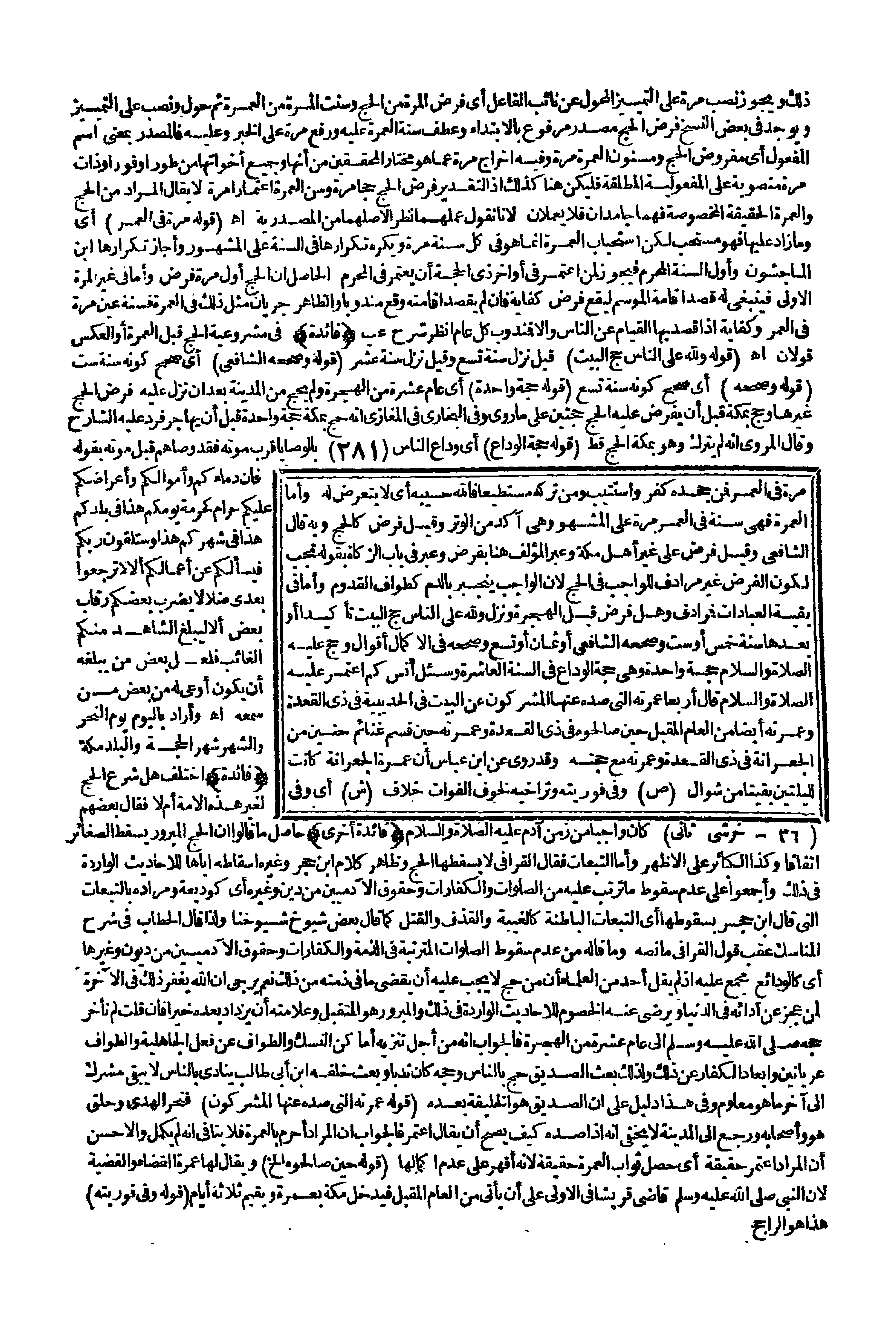 (فَائِدَةٌ) فِي مَشْرُوعِيَّةِ الْحَجِّ قِيلَ الْعُمْرَةُ، أَوْ الْعَكْسُ قَوْلَانِ اهـ (قَوْلُهُ: {وَلِلَّهِ عَلَى النَّاسِ حِجُّ الْبَيْتِ} [آل عمران: 97] قِيلَ نَزَلَ سَنَةَ تِسْعٍ وَقِيلَ نَزَلَ سَنَةَ عَشْرٍ (قَوْلُهُ وَصَحَّحَهُ الشَّافِعِيُّ) أَيْ: صَحَّحَ كَوْنَهُ سَنَةَ سِتٍّ (قَوْلُهُ وَصَحَّحَهُ) أَيْ: صَحَّحَ كَوْنَهُ سَنَةَ تِسْعٍ (قَوْلُهُ: حَجَّةً وَاحِدَةً) أَيْ: عَامَ عَشَرَةٍ مِنْ الْهِجْرَةِ وَلَمْ يَحُجَّ مِنْ الْمَدِينَةِ بَعْدَ أَنْ نَزَلَ عَلَيْهِ فَرْضُ الْحَجِّ غَيْرَهَا وَحَجَّ بِمَكَّةَ قَبْلَ أَنْ يُفْرَضَ عَلَيْهِ الْحَجُّ حَجَّتَيْنِ عَلَى مَا رُوِيَ، وَفِي الْبُخَارِيِّ فِي الْمَغَازِي أَنَّهُ حَجَّ بِمَكَّةَ حَجَّةً وَاحِدَةً قَبْلَ أَنْ يُهَاجِرَ فَرَدَّ عَلَيْهِ الشَّارِحُ وَقَالَ: الْمَرْوِيُّ أَنَّهُ لَمْ يَتْرُكْ وَهُوَ بِمَكَّةَ الْحَجَّ فَقَطْ (قَوْلُهُ: حَجَّةُ الْوَدَاعِ) أَيْ: وَدَاعِ النَّاسِ بِالْوَصَايَا قُرْبَ مَوْتِهِ فَقَدْ وَصَّاهُمْ قَبْلَ مَوْتِهِ بِقَوْلِهِ: فَإِنَّ دِمَاءَكُمْ وَأَمْوَالَكُمْ وَأَعْرَاضَكُمْ عَلَيْكُمْ حَرَامٌ كَحُرْمَةِ يَوْمِكُمْ هَذَا فِي بَلَدِكُمْ هَذَا فِي شَهْرِكُمْ هَذَا وَسَتَلْقَوْنَ رَبَّكُمْ فَيَسْأَلُكُمْ عَنْ أَعْمَالِكُمْ أَلَا لَا تَرْجِعُوا بَعْدِي ضُلَّالًا يَضْرِبُ بَعْضُكُمْ رِقَابَ بَعْضٍ أَلَا لِيُبَلِّغْ الشَّاهِدُ مِنْكُمْ الْغَائِبَ فَلَعَلَّ بَعْضَ مَنْ يَبْلُغُهُ أَنْ يَكُونَ أَوْعَى لَهُ مِنْ بَعْضِ مَنْ سَمِعَهُ. اهـ وَأَرَادَ بِالْيَوْمِ يَوْمَ النَّحْرِ وَالشَّهْرِ شَهْرَ الْحِجَّةِ وَالْبَلَدِ مَكَّةَ.