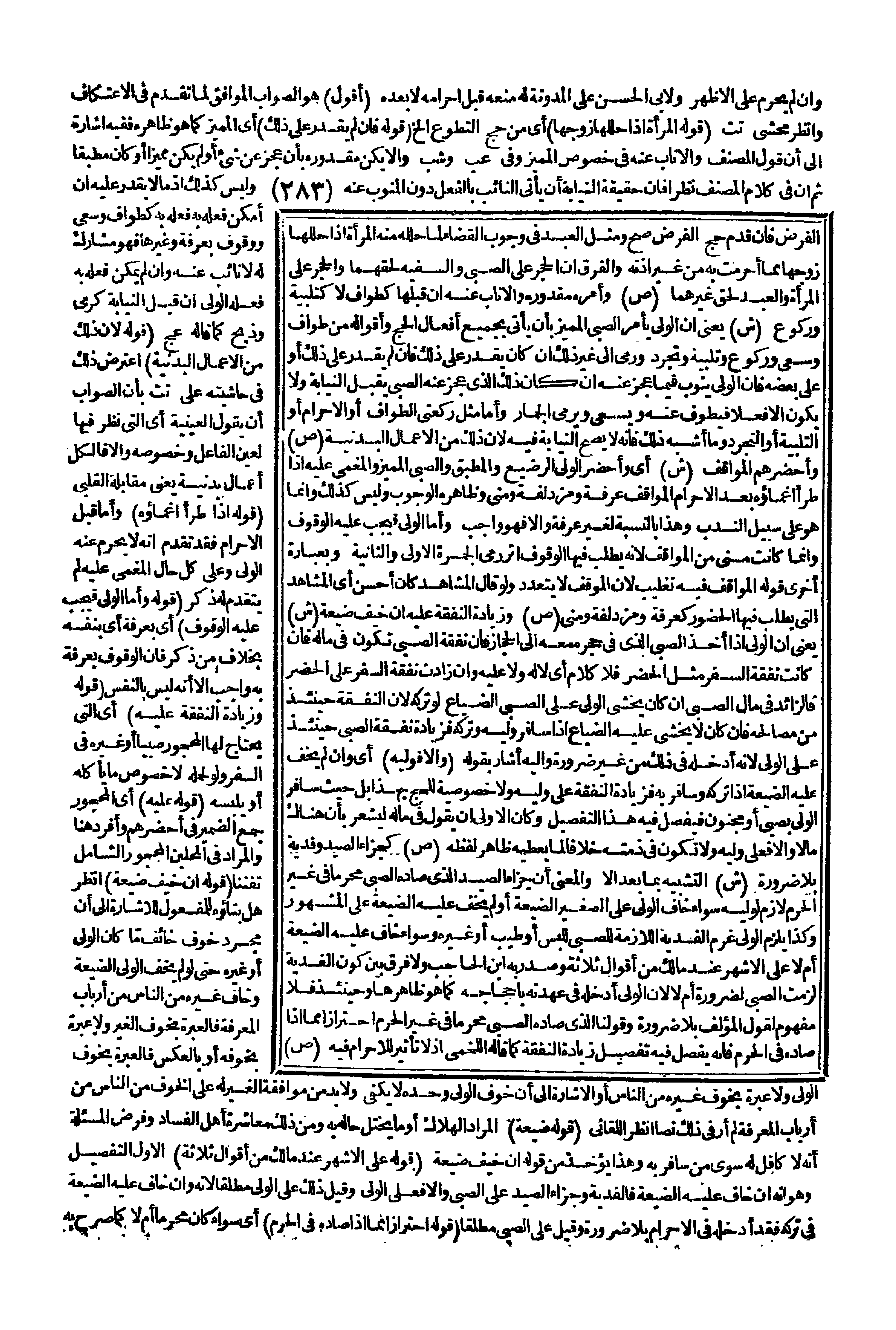 (ص) وَزِيَادَةُ النَّفَقَةِ عَلَيْهِ إنْ خِيفَ ضَيْعَةٌ (ش) يَعْنِي: أَنَّ الْوَلِيَّ إذَا أَخَذَ الصَّبِيَّ الَّذِي فِي حِجْرِهِ مَعَهُ إلَى الْحِجَازِ فَإِنَّ نَفَقَةَ الصَّبِيِّ تَكُونُ فِي مَالِهِ، فَإِنْ كَانَتْ نَفَقَةُ السَّفَرِ مِثْلَ الْحَضَرِ فَلَا كَلَامَ أَيْ: لَا لَهُ وَلَا عَلَيْهِ، وَإِنْ زَادَتْ نَفَقَةُ السَّفَرِ عَلَى الْحَضَرِ فَالزَّائِدُ فِي مَالِ الصَّبِيِّ إنْ كَانَ يَخْشَى الْوَلِيُّ عَلَى الصَّبِيِّ الضَّيَاعَ لَوْ تَرَكَهُ؛ لِأَنَّ النَّفَقَةَ حِينَئِذٍ مِنْ مَصَالِحِهِ، فَإِنْ كَانَ لَا يَخْشَى عَلَيْهِ الضَّيَاعَ إذَا سَافَرَ وَلِيُّهُ وَتَرَكَهُ فَزِيَادَةُ نَفَقَةِ الصَّبِيِّ حِينَئِذٍ عَلَى الْوَلِيِّ؛ لِأَنَّهُ أَدْخَلَهُ فِي ذَلِكَ مِنْ غَيْرِ ضَرُورَةٍ، وَإِلَيْهِ أَشَارَ بِقَوْلِهِ: (وَإِلَّا فَوَلِيُّهُ) أَيْ:، وَإِنْ لَمْ يَخَفْ عَلَيْهِ الضَّيْعَةَ إذَا تَرَكَهُ وَسَافَرَ بِهِ فَزِيَادَةُ النَّفَقَةِ عَلَى وَلِيِّهِ، وَلَا خُصُوصِيَّةَ لِلْحَجِّ بِهَذَا، بَلْ حَيْثُ سَافَرَ الْوَلِيُّ بِصَبِيٍّ، أَوْ مَجْنُونٍ فَيُفَصَّلُ فِيهِ هَذَا التَّفْصِيلُ وَكَانَ الْأَوْلَى أَنْ يَقُولَ: فِي مَالِهِ لِيُشْعِرَ بِأَنَّ هُنَاكَ مَالًا وَإِلَّا فَعَلَى وَلِيِّهِ، وَلَا تَكُونُ فِي ذِمَّتِهِ خِلَافًا لِمَا يُعْطِيهِ ظَاهِرُ لَفْظِهِ (ص) كَجَزَاءِ الصَّيْدِ وَفِدْيَةٍ بِلَا ضَرُورَةٍ (ش) التَّشْبِيهُ بِمَا بَعْدَ إلَّا وَالْمَعْنَى: أَنَّ جَزَاءَ الصَّيْدِ الَّذِي صَادَهُ الصَّبِيُّ مُحْرِمًا فِي غَيْرِ الْحَرَمِ لَازِمٌ لِوَلِيِّهِ، سَوَاءٌ خَافَ الْوَلِيُّ عَلَى الصَّغِيرِ الضَّيْعَةَ، أَوْ لَمْ يَخَفْ عَلَيْهِ الضَّيْعَةَ عَلَى الْمَشْهُورِ، وَكَذَا يَلْزَمُ الْوَلِيَّ غُرْمُ الْفِدْيَةِ اللَّازِمَةِ لِلصَّبِيِّ لِلُبْسٍ، أَوْ طِيبٍ، أَوْ غَيْرِهِ، وَسَوَاءٌ خَافَ عَلَيْهِ الضَّيْعَةَ أَمْ لَا عَلَى الْأَشْهَرِ عِنْدَ مَالِكٍ مِنْ أَقْوَالٍ ثَلَاثَةٍ وَصَدَّرَ بِهِ ابْنُ الْحَاجِبِ، وَلَا فَرْقَ بَيْنَ كَوْنِ الْفِدْيَةِ لَزِمَتْ الصَّبِيَّ لِضَرُورَةٍ أَمْ لَا؛ لِأَنَّ الْوَلِيَّ أَدْخَلَهُ فِي عُهْدَتِهِ بِإِحْجَاجِهِ كَمَا هُوَ ظَاهِرُهَا وَحِينَئِذٍ فَلَا مَفْهُومَ لِقَوْلِ الْمُؤَلِّفِ بِلَا ضَرُورَةٍ وَقَوْلُنَا: الَّذِي صَادَهُ الصَّبِيُّ مُحْرِمًا فِي غَيْرِ الْحَرَمِ احْتِرَازٌ مِمَّا إذَا صَادَهُ فِي الْحَرَمِ فَإِنَّهُ يُفَصَّلُ فِيهِ تَفْصِيلَ زِيَادَةِ النَّفَقَةِ كَمَا قَالَهُ اللَّخْمِيُّ إذْ لَا تَأْثِيرَ لِلْإِحْرَامِ فِيهِ.