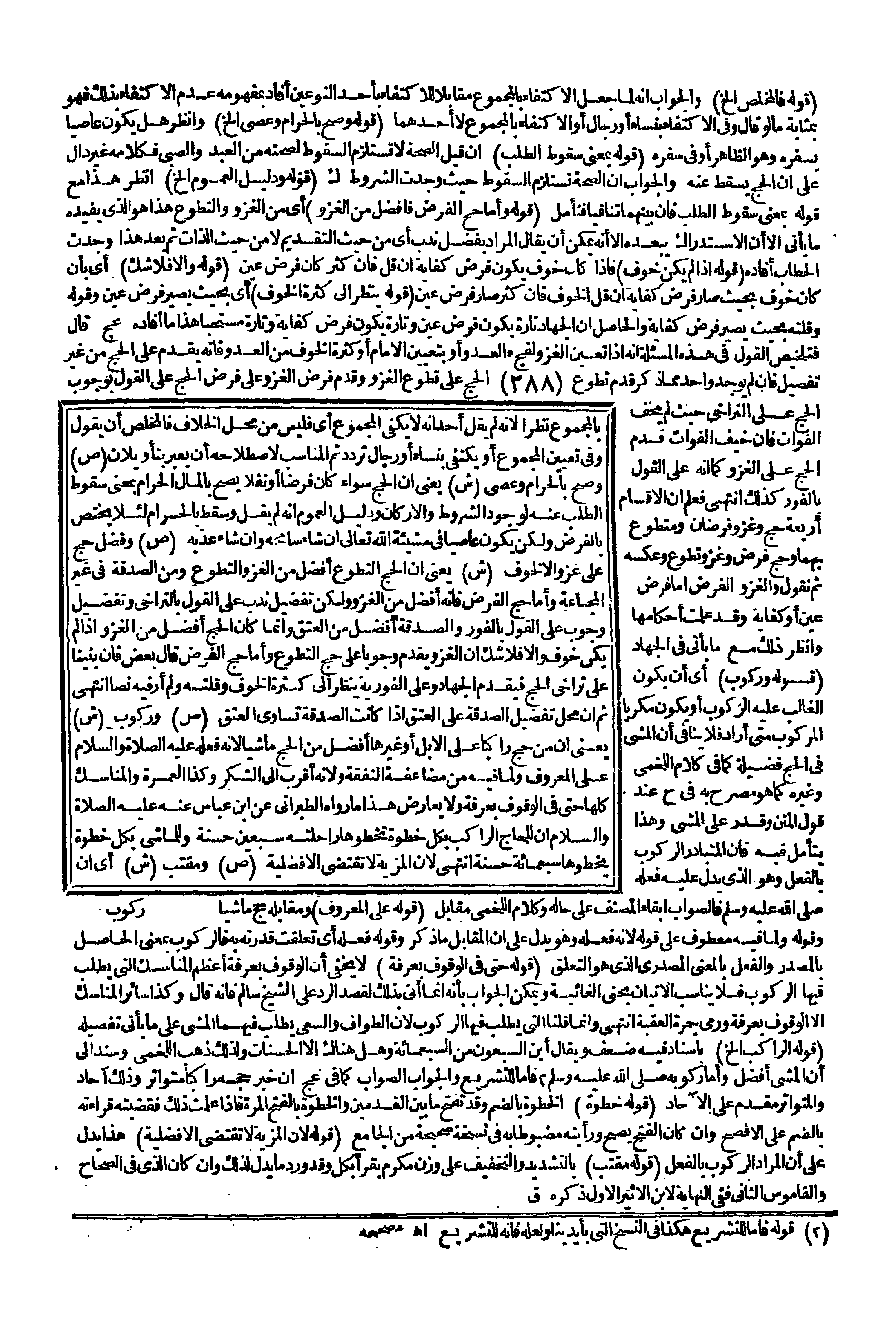 هَذَا مَا أَفَادَهُ عج قَالَ فَتَلْخِيصُ الْقَوْلِ فِي هَذِهِ الْمَسْأَلَةِ أَنَّهُ إذَا تَعَيَّنَ الْغَزْوُ لِفَجْءِ الْعَدُوِّ، أَوْ بِتَعْيِينِ الْإِمَامِ، أَوْ كَثْرَةِ الْخَوْفِ مِنْ الْعَدُوِّ فَإِنَّهُ يُقَدَّمُ عَلَى الْحَجِّ مِنْ غَيْرِ تَفْصِيلٍ فَإِنْ لَمْ يُوجَدْ وَاحِدٌ مِمَّا ذُكِرَ قُدِّمَ تَطَوُّعُ الْحَجِّ عَلَى تَطَوُّعِ الْغَزْوِ وَقُدِّمَ فَرْضُ الْغَزْوِ عَلَى فَرْضِ الْحَجِّ عَلَى الْقَوْلِ بِوُجُوبِ الْحَجِّ عَلَى التَّرَاخِي حَيْثُ لَمْ يَخَفْ الْفَوَاتَ فَإِنْ خِيفَ الْفَوَاتُ قُدِّمَ الْحَجُّ عَلَى الْغَزْوِ كَمَا أَنَّهُ عَلَى الْقَوْلِ بِالْفَوْرِ كَذَلِكَ انْتَهَى فَعُلِمَ أَنَّ الْأَقْسَامَ أَرْبَعَةٌ حَجٌّ وَغَزْوٌ فَرْضَانِ وَمُتَطَوِّعٌ بِهِمَا وَحَجُّ فَرْضٍ وَغَزْوُ تَطَوُّعٍ وَعَكْسُهُ ثُمَّ نَقُولُ وَالْغَزْوُ الْفَرْضُ إمَّا فَرْضُ عَيْنٍ، أَوْ كِفَايَةٍ، وَقَدْ عَلِمْت أَحْكَامَهَا، وَانْظُرْ ذَلِكَ مَعَ مَا يَأْتِي فِي الْجِهَادِ.