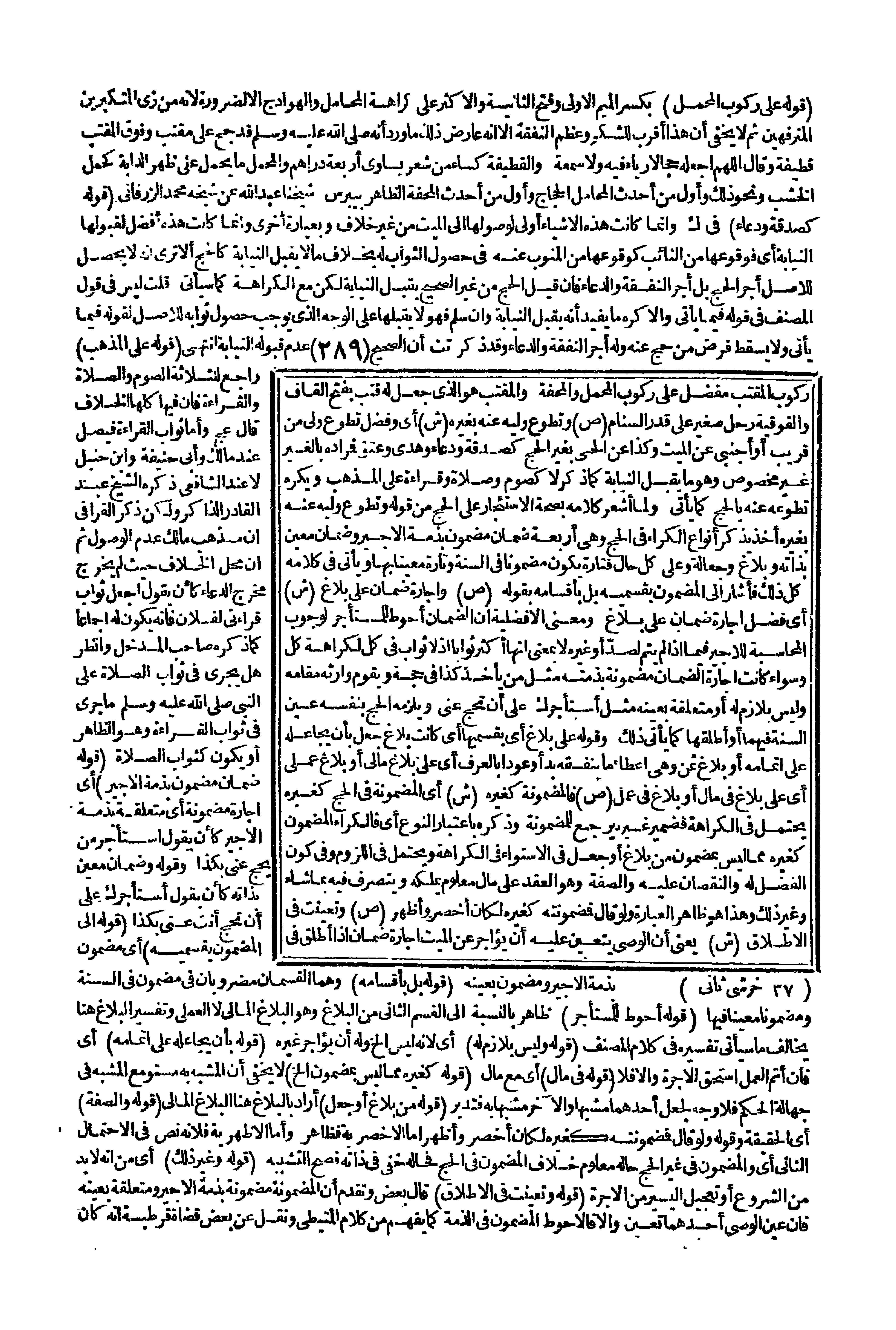 ـــــــــــــــــــــــــــــQقَوْلُهُ: عَلَى رُكُوبِ الْمَحْمَلِ) بِكَسْرِ الْمِيمِ الْأُولَى وَفَتْحِ الثَّانِيَةِ وَالْأَكْثَرُ عَلَى كَرَاهَةِ الْمَحَامِلِ وَالْهَوَادِجِ إلَّا لِضَرُورَةٍ؛ لِأَنَّهُ مِنْ زِيِّ الْمُتَكَبِّرِينَ الْمُتَرَفِّهِينَ ثُمَّ لَا يَخْفَى أَنَّ هَذَا أَقْرَبُ لِلشُّكْرِ وَعِظَمِ النَّفَقَةِ إلَّا أَنَّهُ عَارَضَ ذَلِكَ مَا وَرَدَ «أَنَّهُ - صَلَّى اللَّهُ عَلَيْهِ وَسَلَّمَ - قَدْ حَجَّ عَلَى مُقَتَّبٍ وَفَوْقَ الْمُقَتَّبِ قَطِيفَةٌ وَقَالَ اللَّهُمَّ اجْعَلْهُ حَجًّا لَا رِيَاءَ فِيهِ وَلَا سُمْعَةَ» وَالْقَطِيفَةُ كِسَاءٌ مِنْ شَعْرٍ يُسَاوِي أَرْبَعَةَ دَرَاهِمَ وَالْمَحْمَلُ مَا يُحْمَلُ عَلَى ظَهْرِ الدَّابَّةِ كَحَمْلِ الْخَشَبِ وَنَحْوِ ذَلِكَ وَأَوَّلُ مَنْ أَحْدَثَ الْمَحَامِلَ الْحَجَّاجُ وَأَوَّلُ مَنْ أَحْدَثَ الْمِحَفَّةَ الظَّاهِرُ بِيبَرْسَ، شَيْخُنَا عَبْدُ اللَّهِ عَنْ شَيْخِهِ مُحَمَّدٍ الزَّرْقَانِيِّ.