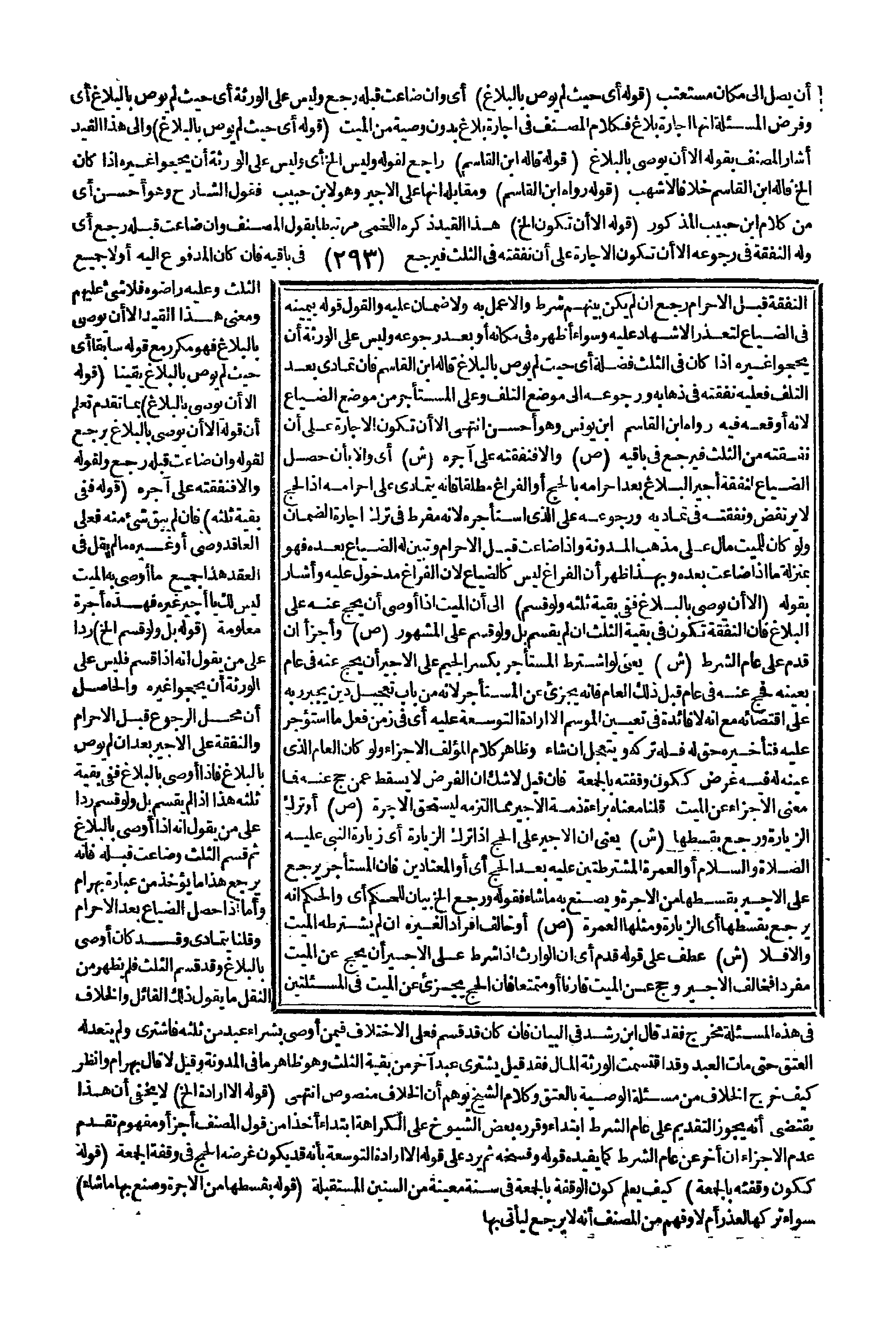 (قَوْلُهُ: بَلْ وَلَوْ قُسِّمَ إلَخْ) رَدًّا عَلَى مَنْ يَقُولُ إنَّهُ إذَا قُسِّمَ فَلَيْسَ عَلَى الْوَرَثَةِ أَنْ يُحِجُّوا غَيْرَهُ، وَالْحَاصِلُ أَنَّ مَحَلَّ الرُّجُوعِ قَبْلَ الْإِحْرَامِ وَالنَّفَقَةُ عَلَى الْأَجِيرِ بَعْدَ أَنْ لَمْ يُوصِ بِالْبَلَاغِ، فَإِذَا أَوْصَى بِالْبَلَاغِ فَفِي بَقِيَّةِ ثُلُثِهِ هَذَا إذَا لَمْ يُقَسَّمْ، بَلْ وَلَوْ قُسِّمَ رَدًّا عَلَى مَنْ يَقُولُ: إنَّهُ إذَا أَوْصَى بِالْبَلَاغِ ثُمَّ قُسِّمَ الثُّلُثُ وَضَاعَتْ قَبْلَهُ فَإِنَّهُ يَرْجِعُ هَذَا مَا يُؤْخَذُ مِنْ عِبَارَةِ بَهْرَامَ، وَأَمَّا إذَا حَصَلَ الضَّيَاعُ بَعْدَ الْإِحْرَامِ وَقُلْنَا يَتَمَادَى، وَقَدْ كَانَ أَوْصَى بِالْبَلَاغِ، وَقَدْ قُسِّمَ الثُّلُثُ فَلَمْ يَظْهَرْ مِنْ النَّقْلِ مَا يَقُولُ ذَلِكَ الْقَائِلُ، وَالْخِلَافُ فِي هَذِهِ الْمَسْأَلَةِ مُخَرَّجٌ فَقَدْ قَالَ ابْنُ رُشْدٍ فِي الْبَيَانِ: فَإِنْ كَانَ قَدْ قُسِّمَ فَعَلَى الِاخْتِلَافِ فِيمَنْ أَوْصَى بِشِرَاءِ عَبْدٍ مِنْ ثُلُثِهِ فَاشْتُرِيَ وَلَمْ يَتَعَدَّ لَهُ الْعِتْقُ حَتَّى مَاتَ الْعَبْدُ وَقَدْ اقْتَسَمَتْ الْوَرَثَةُ الْمَالَ فَقَدْ قِيلَ: يُشْتَرَى عَبْدٌ آخَرُ مِنْ بَقِيَّةِ الثُّلُثِ وَهُوَ ظَاهِرُ مَا فِي الْمُدَوَّنَةِ وَقِيلَ لَا قَالَ بَهْرَامُ، وَانْظُرْ كَيْف خَرَجَ الْخِلَافُ مِنْ مَسْأَلَةِ الْوَصِيَّةِ بِالْعِتْقِ، وَكَلَامُ الشَّيْخِ يُوهِمُ أَنَّ الْخِلَافَ مَنْصُوصٌ انْتَهَى.