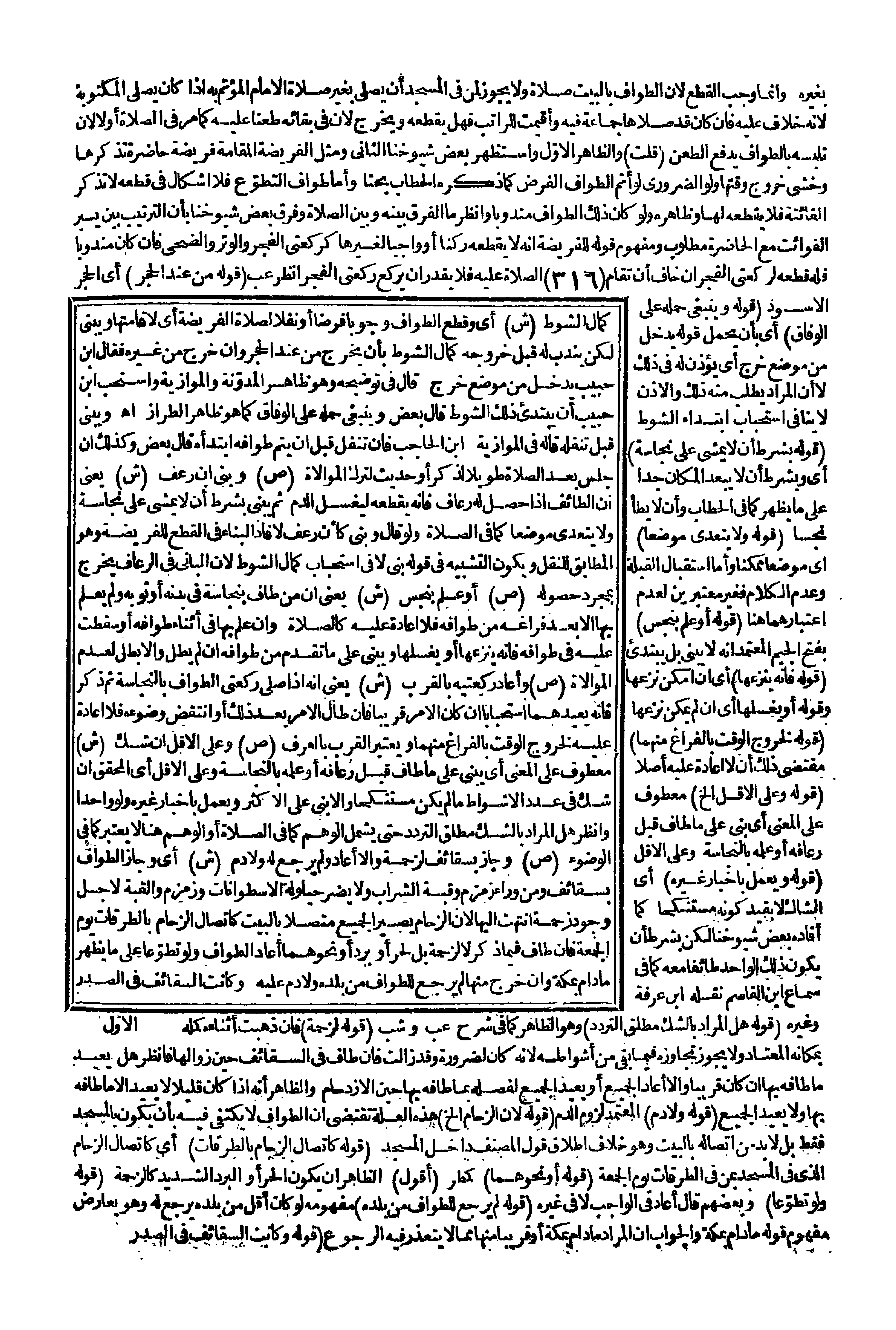 كَمَالُ الشَّوْطِ (ش) أَيْ: وَقَطَعَ الطَّوَافَ وُجُوبًا فَرْضًا، أَوْ نَفْلًا لِصَلَاةِ الْفَرِيضَةِ أَيْ لِإِقَامَتِهَا وَيَبْنِي، لَكِنْ يُنْدَبُ لَهُ قَبْلَ خُرُوجِهِ كَمَالُ الشَّوْطِ بِأَنْ يَخْرُجَ مِنْ عِنْدِ الْحِجْرِ، وَإِنْ خَرَجَ مِنْ غَيْرِهِ فَقَالَ ابْنُ حَبِيبٍ يَدْخُلُ مِنْ مَوْضِعٍ خَرَجَ قَالَ فِي تَوْضِيحِهِ، وَهُوَ ظَاهِرُ الْمُدَوَّنَةِ وَالْمَوَّازِيَّةِ وَاسْتَحَبَّ ابْنُ حَبِيبٍ أَنْ يَبْتَدِئَ ذَلِكَ الشَّوْطَ، قَالَ بَعْضٌ: وَيَنْبَغِي حَمْلُهُ عَلَى الْوِفَاقِ كَمَا هُوَ ظَاهِرُ الطِّرَازِ. اهـ وَيَبْنِي قَبْلَ تَنَفُّلِهِ قَالَهُ فِي الْمَوَّازِيَّةِ ابْنُ الْحَاجِبِ، فَإِنْ تَنَفَّلَ قَبْلَ أَنْ يُتِمَّ طَوَافَهُ ابْتَدَأَهُ، قَالَ بَعْضٌ: وَكَذَلِكَ إنْ جَلَسَ بَعْدَ الصَّلَاةِ طَوِيلًا لِذِكْرٍ، أَوْ حَدِيثٍ لِتَرْكِ الْمُوَالَاةِ.