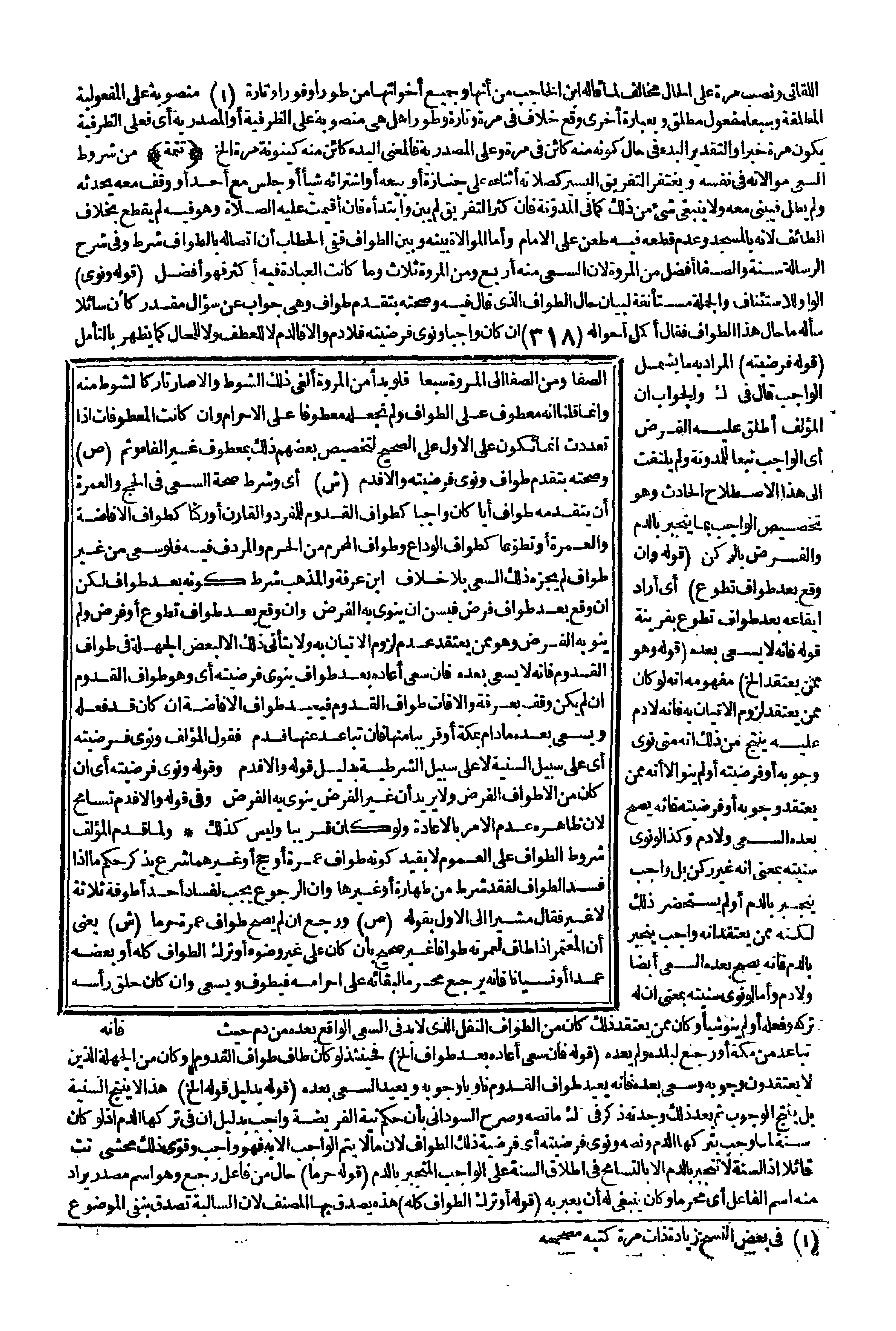 وَالْمَذْهَبُ شَرَطَ كَوْنَهُ بَعْدَ طَوَافٍ، لَكِنْ إنْ وَقَعَ بَعْدَ طَوَافِ فَرْضٍ فَيُسَنُّ أَنْ يَنْوِيَ بِهِ الْفَرْضَ، وَإِنْ وَقَعَ بَعْدَ طَوَافِ تَطَوُّعٍ، أَوْ فَرْضٍ وَلَمْ يَنْوِ بِهِ الْفَرْضَ، وَهُوَ مِمَّنْ يَعْتَقِدُ عَدَمَ لُزُومِ الْإِتْيَانِ بِهِ، وَلَا يَتَأَتَّى ذَلِكَ إلَّا لِبَعْضِ الْجَهَلَةِ فِي طَوَافِ الْقُدُومِ فَإِنَّهُ لَا يَسْعَى بَعْدَهُ، فَإِنْ سَعَى أَعَادَهُ بَعْدَ طَوَافٍ يَنْوِي فَرْضِيَّتَهُ أَيْ: وَهُوَ طَوَافُ الْقُدُومِ إنْ لَمْ يَكُنْ وُقُوفٌ بِعَرَفَةَ وَإِلَّا فَاتَ طَوَافُ الْقُدُومِ فَيُعِيدُ طَوَافَ الْإِفَاضَةِ إنْ كَانَ قَدْ فَعَلَهُ وَيَسْعَى بَعْدَهُ مَا دَامَ بِمَكَّةَ، أَوْ قَرِيبًا مِنْهَا فَإِنْ تَبَاعَدَ عَنْهَا فَدَمٌ فَقَوْلُ الْمُؤَلِّفِ وَنَوَى فَرْضِيَّتَهُ أَيْ: عَلَى سَبِيلِ السُّنِّيَّةِ لَا عَلَى سَبِيلِ الشَّرْطِيَّةِ بِدَلِيلِ قَوْلِهِ: وَإِلَّا فَدَمٌ، وَقَوْلُهُ: وَنَوَى فَرْضِيَّتَهُ أَيْ: إنْ كَانَ مِنْ الْأَطْوَافِ الْفَرْضِ، وَلَا يُرِيدُ أَنَّ غَيْرَ الْفَرْضِ يَنْوِي بِهِ الْفَرْضَ، وَفِي قَوْلِهِ: وَإِلَّا فَدَمٌ تَسَامُحٌ؛ لِأَنَّ ظَاهِرَهُ عَدَمُ الْأَمْرِ بِالْإِعَادَةِ وَلَوْ كَانَ قَرِيبًا، وَلَيْسَ كَذَلِكَ.