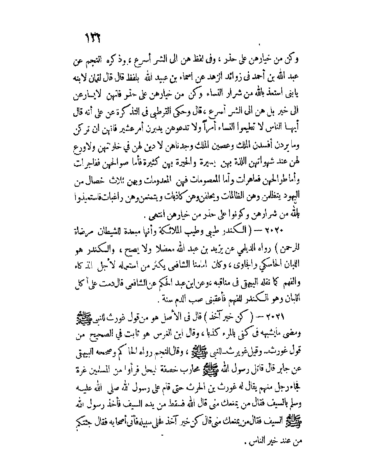 عنه في صحيحه شطره إلى قوله أو عابر سبيل، وزاد أحمد والنسائي أوله أعبد الله كأنك تراه، وأخرجه البخاري عن مجاهد، ورواه الترمذي وآخرون، وزاد العسكري إذا أصبحتَ فلا تحدث نفسك بالمساء وإذا أمسيت فلا تحدث نفسك بالصباح وخذ عن صحتك لسقمك، ومن حياتك لموتك، فإنك لا تدري ما اسمك غدا، وقال النجم وفي معناه ما عند الحسن بن سفيان وأبي نعيم عن الحكم بن عمير كونوا في الدنيا أضيافا، واتخذوا المساجد بيوتا، وعودوا قلوبكم الرقة، وأكثروا من التفكير والبكاء، ولا تختلفن بكم الأهواء، تبنون ما لا تسكنون، وتجمعون ما لا تأكلون، وتأملون ما لا تدركون.