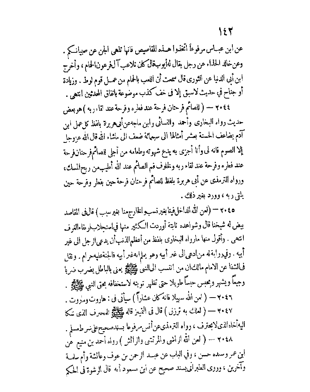 2052 - لعن الله المخنثين من الرجال، والمترجلات من النساء رواه البخاري وأبو داود والترمذي عن ابن عباس، وفي لفظ عند أحمد وأبي داود وابن ماجه لعن الله المتشبهات من النساء بالرجال والمتشبهين من الرجال بالنساء، ولأبي داود عن عائشة لعن الله الرجلة من النساء، والحاكم عن أبي هريرة لعن الرجل يلبس لبسة المرأة والمرأة تلبس لبسة الرجل.