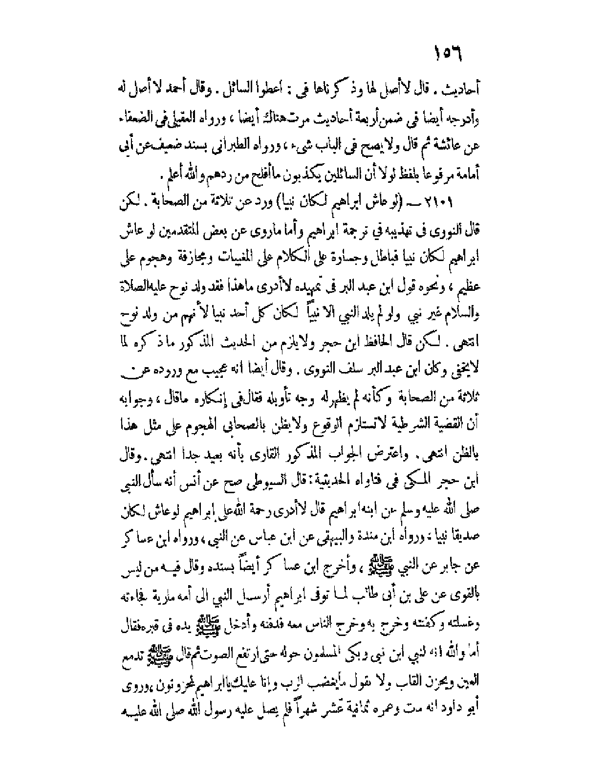 وقال النجم وأورده السيوطي في الجامع الصغير بلفظ: لو عاش إبراهيم لكان صديقا نبيا، وقال أخرجه البارودي عن أنس، وابن عساكر عن جابر وعن عباس وعن ابن أبي أوفى.