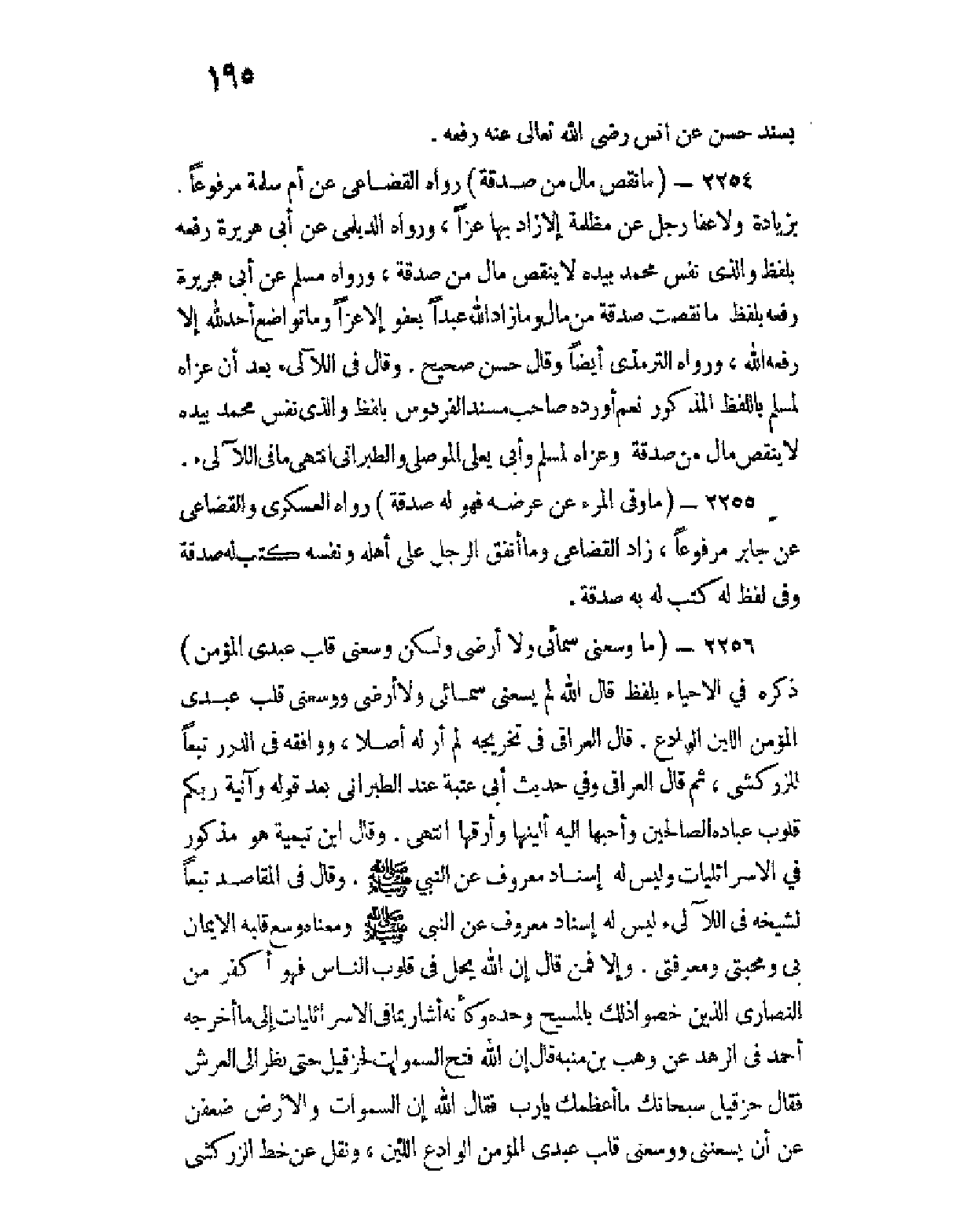 وقال في اللآلئ بعد أن عزاه لمسلم باللفظ المذكور نعم أورده صاحب مسند الفردوس بلفظ والذي نفس محمد بيده لا ينقص مال من صدقة وعزاه لمسلم وأبي يعلى الموصلي والطبراني انتهى ما في اللآلئ.