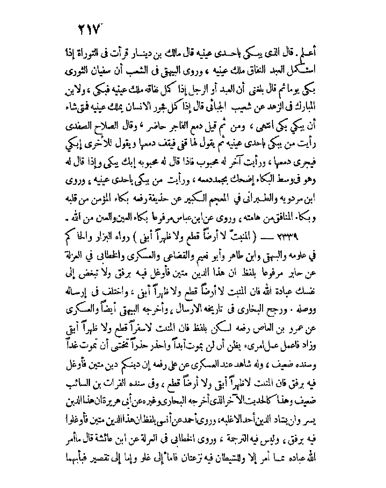 وروى ابن مردويه والطبراني في المعجم الكبير عن حذيفة رفعه: بكاء المؤمن من قلبه