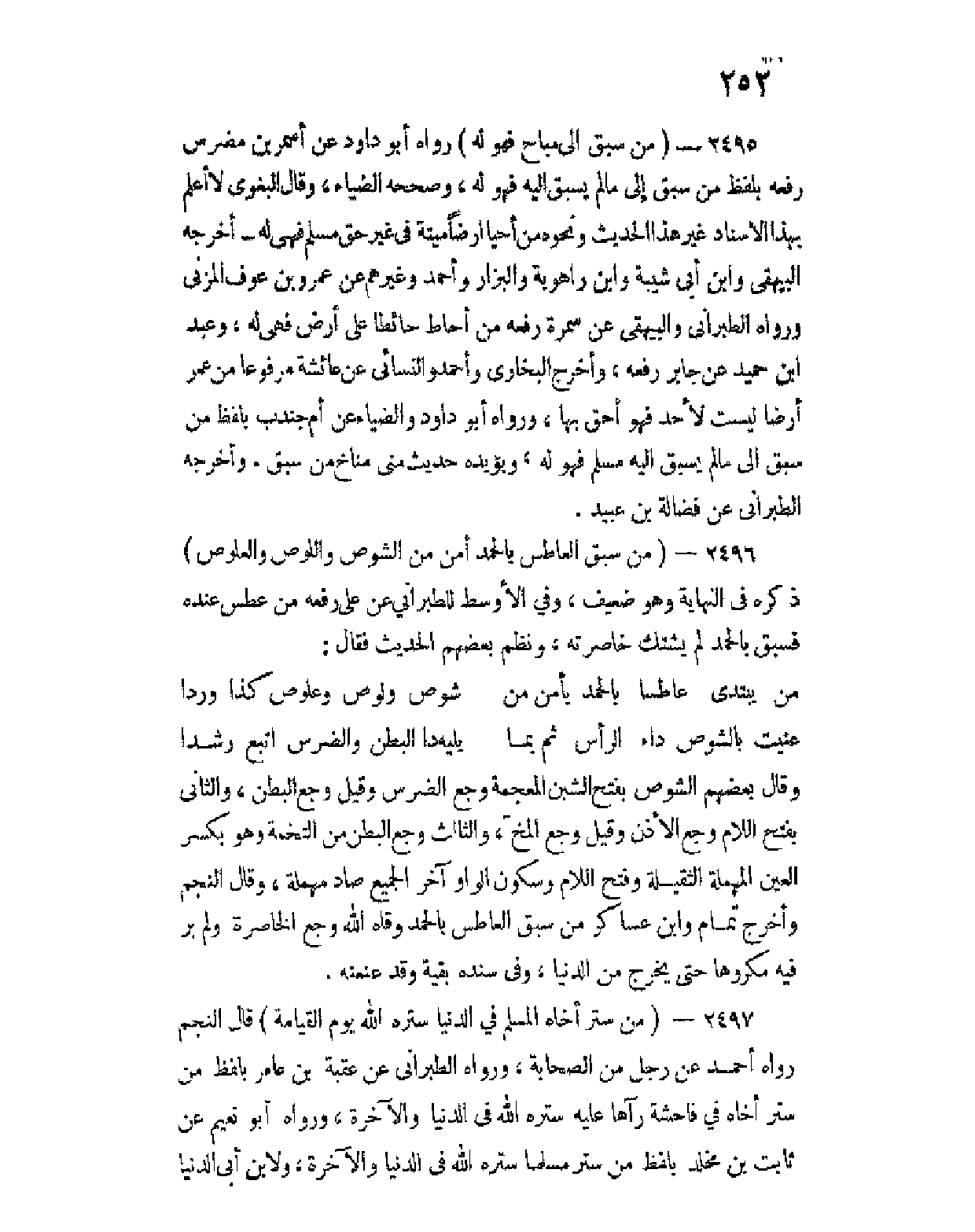 رواه أحمد وأبو داود وابن ماجه وأبو يعلى والترمذي وحسنه الحاكم وصححه البيهقي عن أبي هريرة مرفوعا وهو عند الحاكم أيضا وغيره وصححه عن ابن عمر وعند ابن ماجه عن أنس وأبي سعيد بسند ضعيف، وعند الطبراني عن ابن عباس وابن
