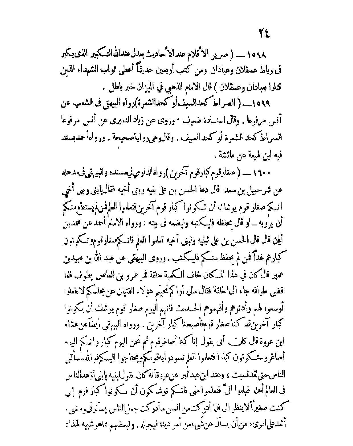 وقال النجم بعد إيراد ما ذكر لكن أورد السيوطي في الجامع الصغير عن جابر بلفظ ركعتان بعمامة خير من سبعين ركعة من غير عمامة فهو غير موضوع لأن الجامع المذكور جرده مؤلفه عن الموضوع.