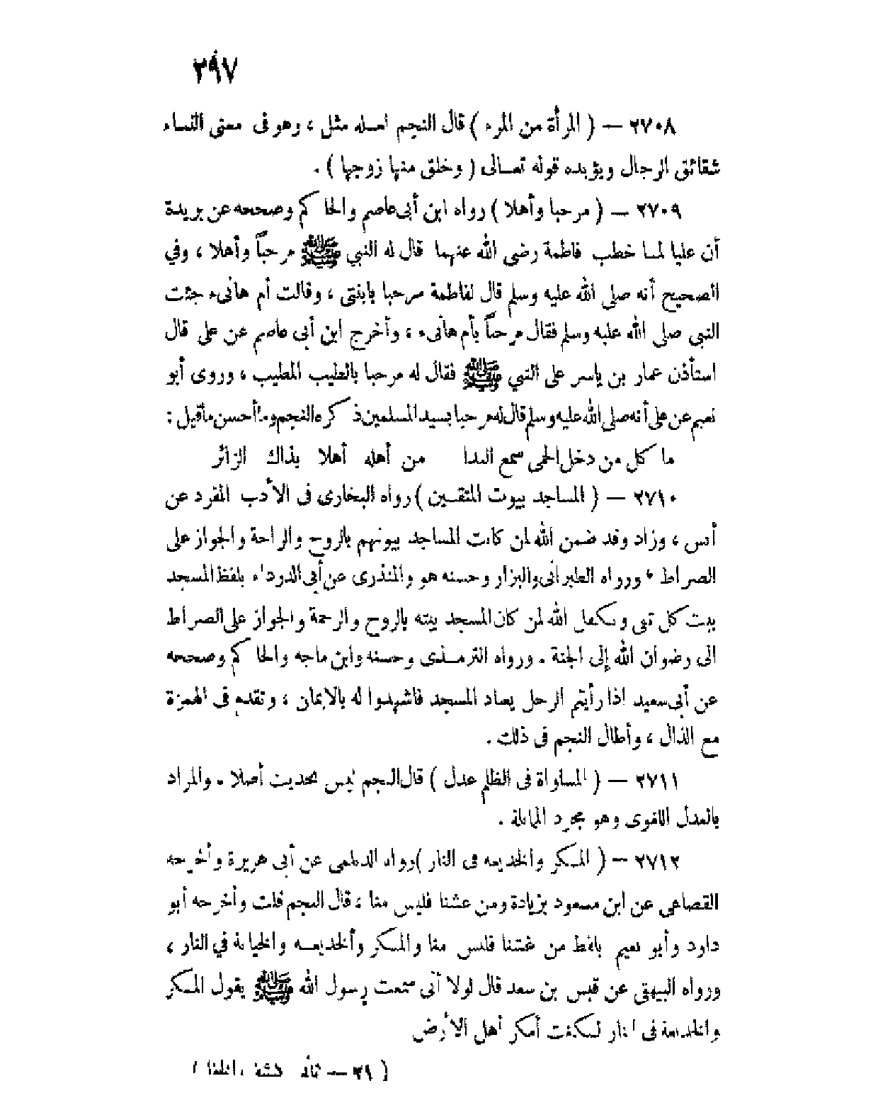 2719 - ما أذن الله لشئ ما أذن لنبي حسن الصوت يتغنى بالقرآن يجهر به رواه الشيخان وأبو داود والنسائي عن أبي هريرة، وأخرجه ابن حبان بلفظ ما أذن الله لشئ كإذنه للذي يتغنى بالقرآن يجهر به، وأخرجه ابن أبي شيبة عن أبي سلمة مرسلا، ولفظه ما أذن الله لشئ كأذنه لعبد يترنم بالقرآن، وفي لفظ عند عبد الرزاق ما أذن الله لشئ ما أذن لرجل حسن الترنم بالقرآن ووصله أبو نصر