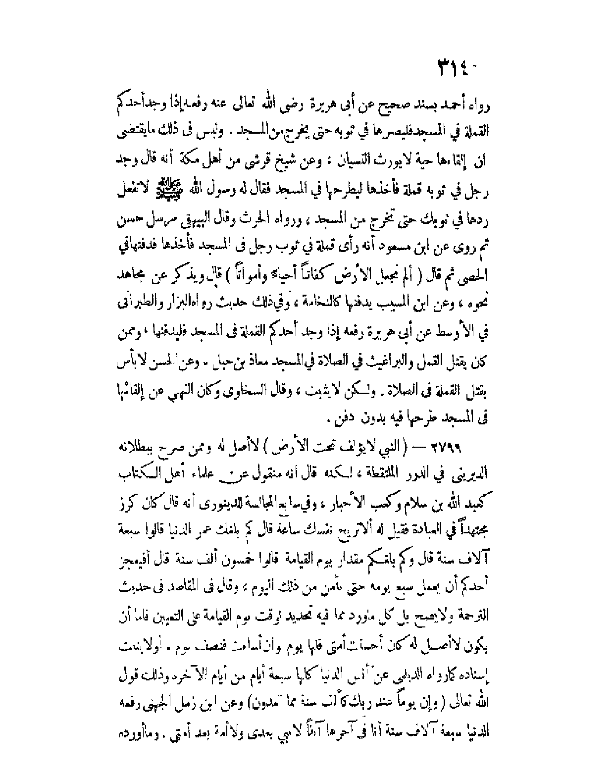 ورواه الحرث، وقال البيهقي مرسل حسن، ثم روى عن ابن مسعود أنه رأى قملة في ثوب رجل في المسجد فأخذها فدفنها في الحصى ثم قال ... (ألم نجعل الأرض كفاتا أحياء وأمواتا) ... ، قال ويذكر عن مجاهد نحوه، وعن ابن المسيب يدفنها كالنخامة.