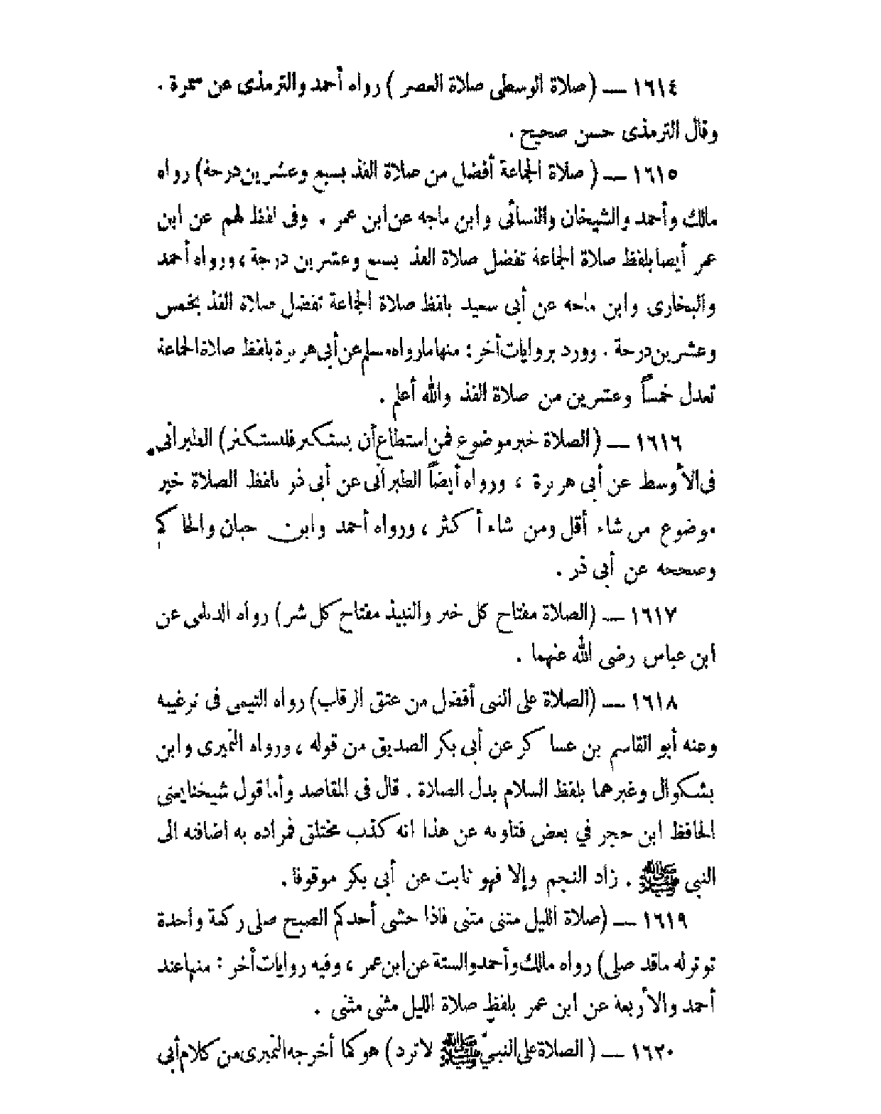 فقال الصلاة عمود الدين وهو مرسل ورجاله ثقات.