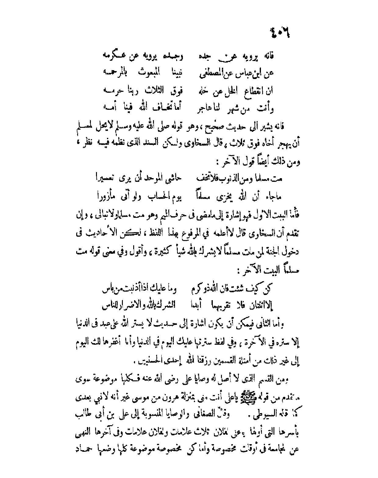 فإنه يشير إلى الحديث الصحيح وهو قوله صلى الله عليه وسلم: " لا يحل لمسلم أن يهجر أخاه فوق ثلاث " قال السخاوي ولكن السند الذي نظمه فيه نظر.