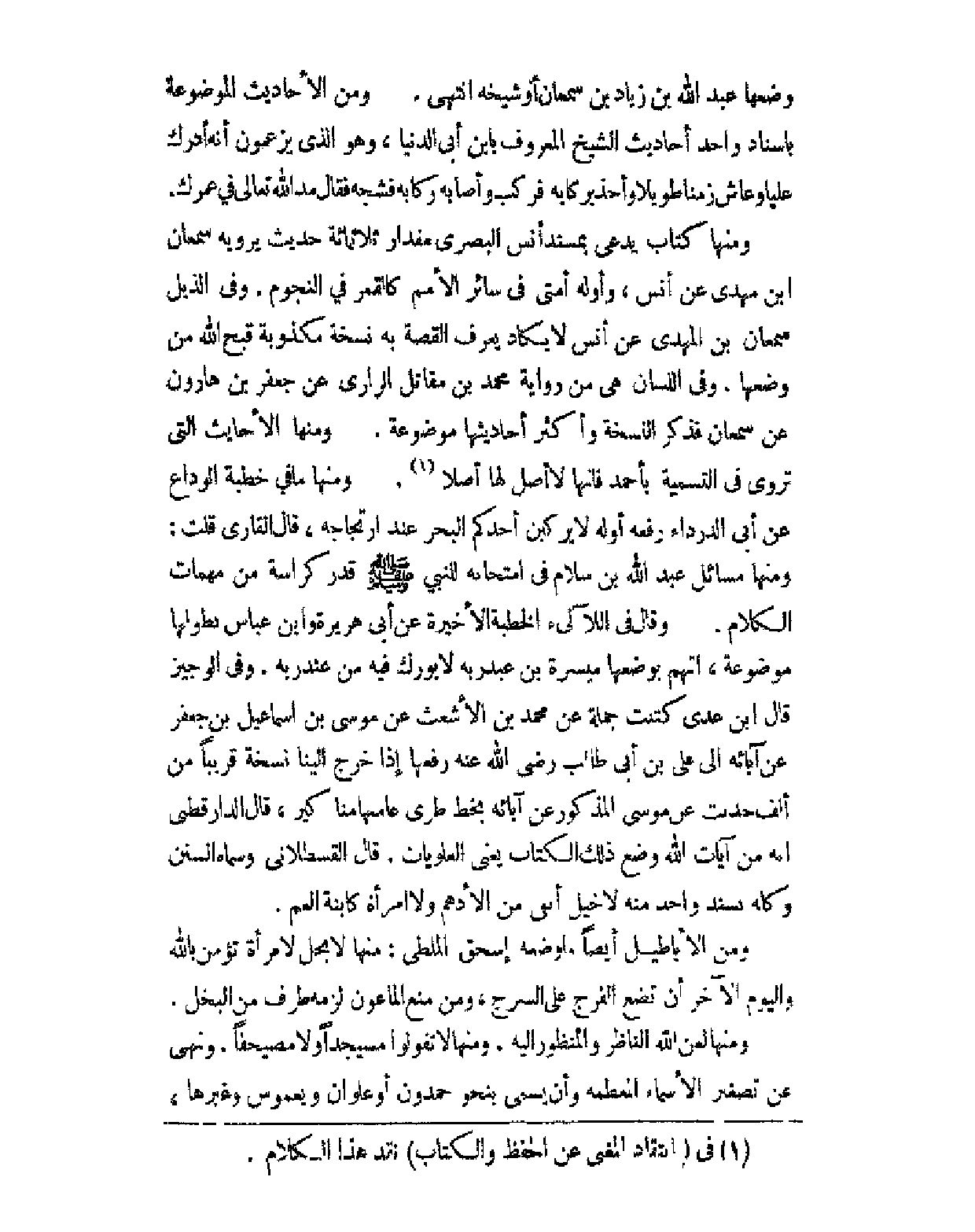 (في " انتقاد المغني عن الحفظ والكتاب " نقد هذا الكلام ومنها ما في خطبة الوداع عن أبي الدرداء رفعه أوله: لا يركبن احدكم البحر عند ارتجاجه ... قال القاري قلت ومنها مسائل عبد الله بن سلام في امتحانه للنبي صلى الله عليه وسلم قدر كراسة من مهمات الكلام.