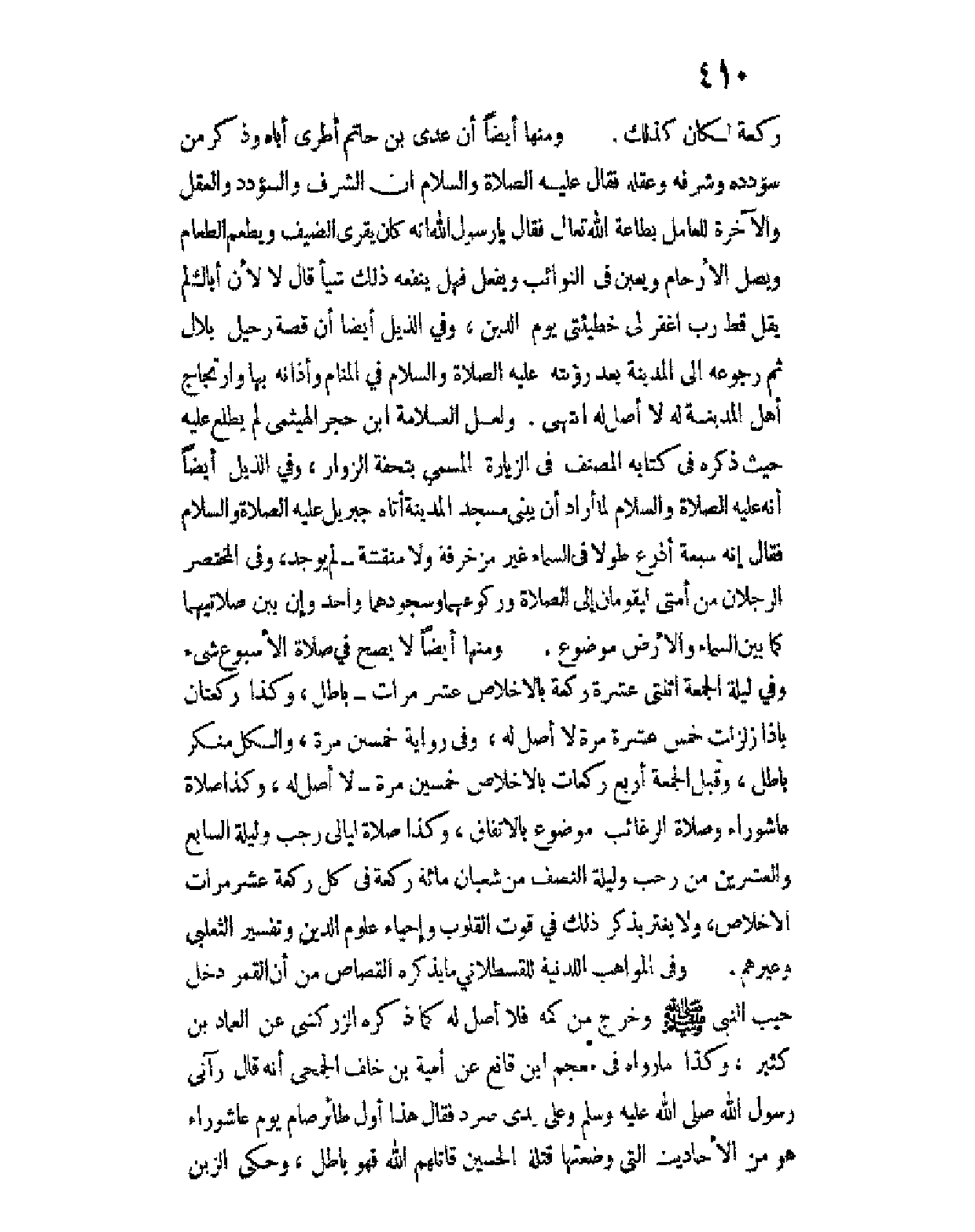 وكذا ركعتان بإذا زلزلت خمس عشرة مرة - لا أصل له وفي رواية خمسين مرة، والكل منكر باطل، وقبل الجمعة أربع ركعات بالإخلاص خمسين مرة - لا أصل له، وكذا صلاة عاشوراء وصلاة الرغائب موضوع بالاتفاق، وكذا صلاة ليالي رجب وليلة السابع والعشرين من رجب وليلة النصف من شعبان مائة ركعة في كل ركعة عشر مرات الإخلاص، ولا يغتر بذكر ذلك في قوت القلوب وإحياء علوم الدين وتفسير الثعلبي وغيرهم.