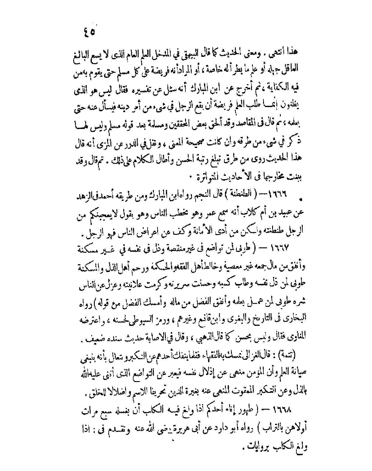 1676 - طوبى لمن عمل بعلمه، وأنفق الفضل من ماله، وأمسك الفضل من قوله، ووسعته السنة، ولم يعدل عنها إلى البدعة.