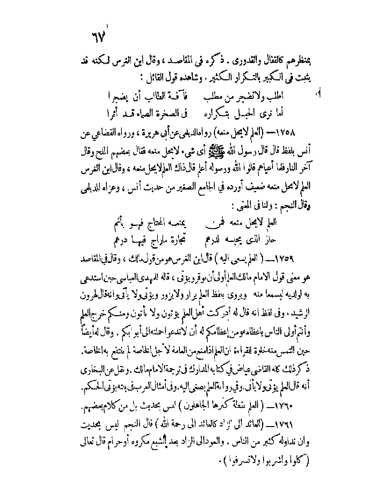 وما أحسن ما قيل: تحصن قوم بالسلاح وإنما ... بقية آجال الرجال سلاحها.