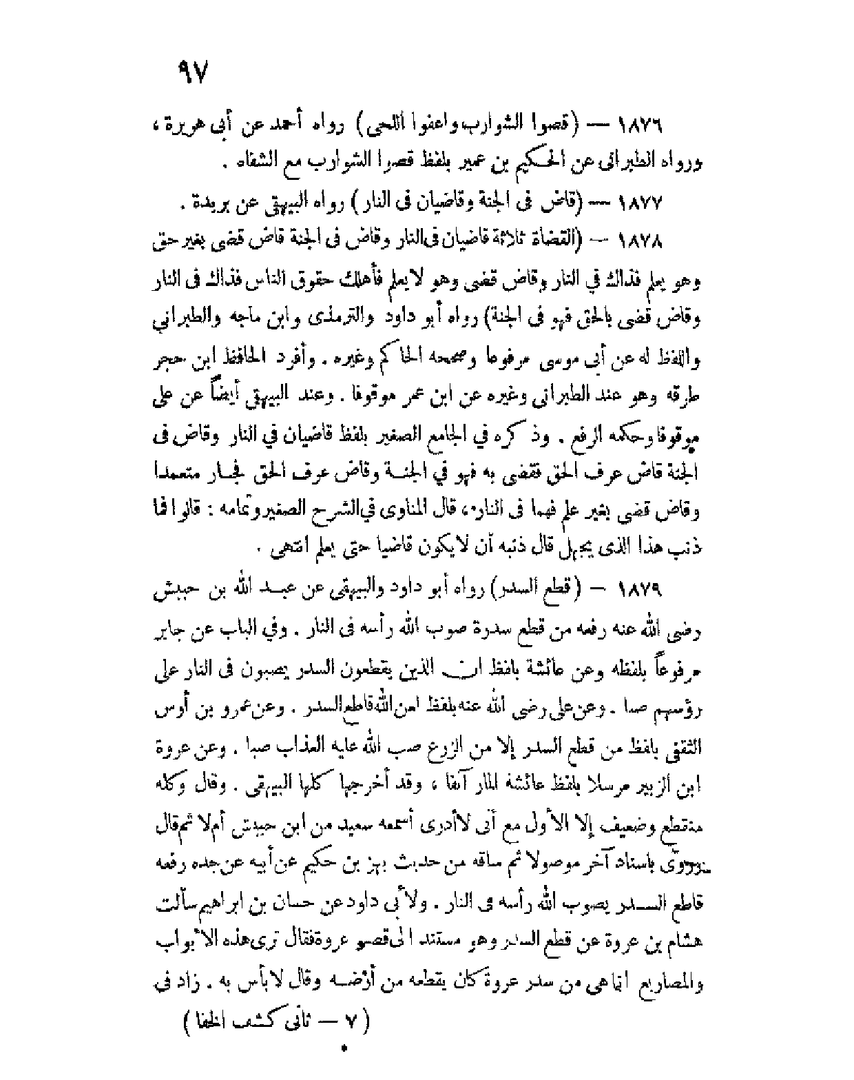 الله عزل وجل، لكنه واه، ونقل السيوطي عن البيهقي أن المتن منكر، وفي سنده مجهول وأقره، وروى ابن ماجه والطبراني وأبو الشيخ وغيرهم بسند ضعيف عن أنس رفعه: من لقم أخاه المؤمن لقمة حلوى لا يرجو بها ثناءه ولا يخاف بها من شره ولا يريد بها إلا وجهه صرف الله عنه بها حرارة الموقف يوم القيامة، وحكم ابن الجوزي على ما في الترجمة بالوضع كما قاله القاري منظور فيه، لكن قال النجم وهو حديث موضوع وضعه ابن سليل أحد رواته كما نبه عليه الخطيب وغيره.