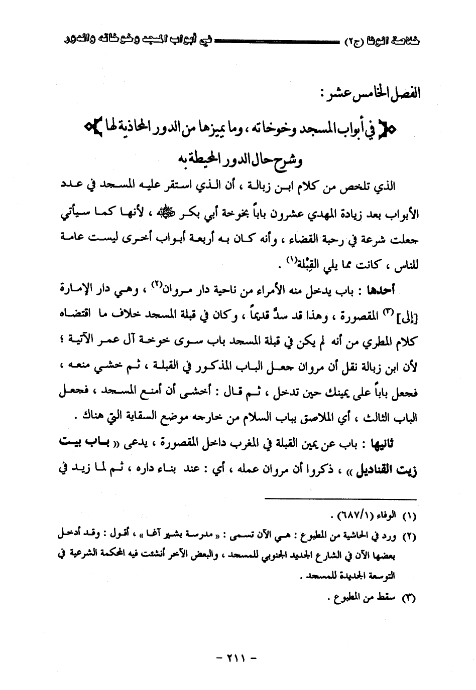 " الفصل الخامس عشر " في أبواب المسجد وخوخاته وما يميزها من الدور المحاذية لها وشرح حال الدور المحيطة به