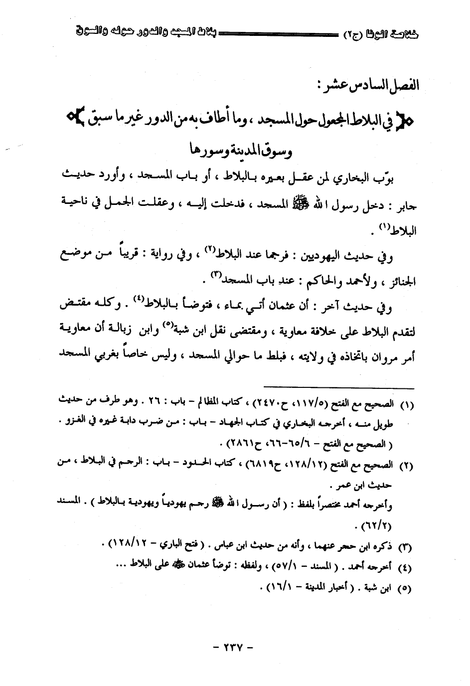 " الفصل السادس عشر " في البلاط المجعول حول المسجد وما أطاف به من الدور غير ما سبق وسوق المدينة وسورها