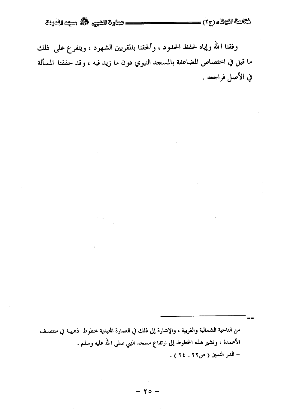وفقنا الله وإياه لحفظ الحدود وألحقنا بالمقرّبين الشهود ويتقرع على ذلك ما قيل في اختصاص المضاعفة بالمسجد النبوي دون ما زيد فيه وقد حققنا المسألة في الأصل فراجعه