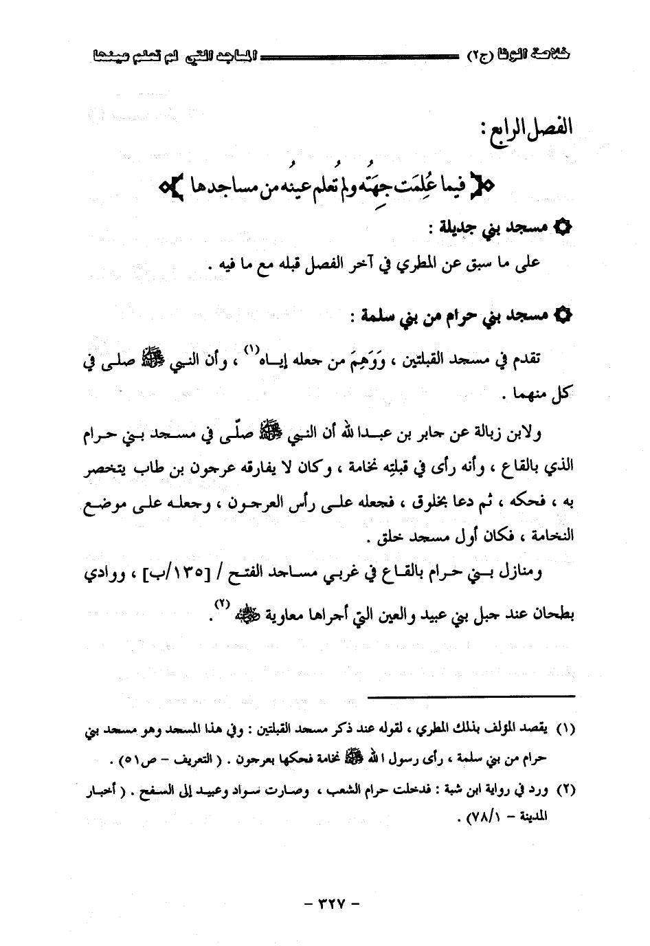 " الفصل الرابع " فيما علمت جهته ولم تعلم عينه من مساجدها