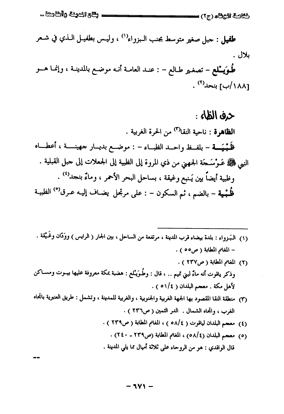 " طفيل " جبل صغير متوسط بجنب البزواء وليس بطفيل الذي في شعر بلال " طويلع " تصغير طالع عند العامة إنه موضع بالمدينة وإنما هو بنجد.