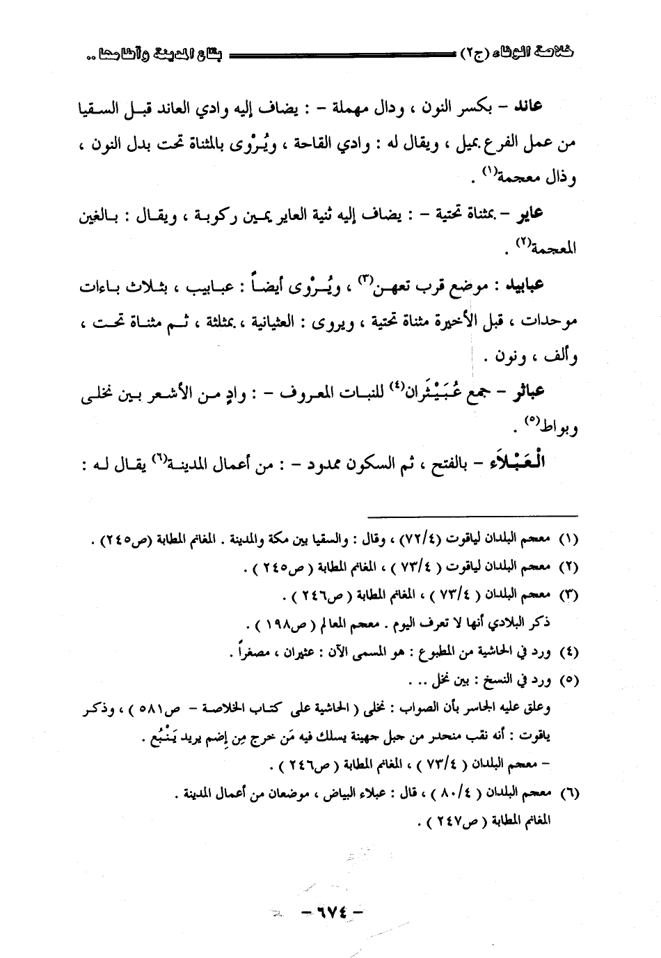 " عاند " بكسر النون ودال مهملة يضاف إليه وادي العاند قبل السقيا من عمل الفرع بميل ويقال له وادي القاحة ويروي بالمثناة تحت بدل النون وذال معجمة " عابر " بمثناة تحتية يضاف إليه ثنية العاير يمين ركوبة ويقال بالغين المعجمة " عبابيد " موضع قرب تعهن ويروي أيضا عبابيب بثلاث باءات موحدات قبل الأخيرة مثناة تحتية ويروي العثيانية بمثلثة ثم مثناة تحت وألف ونون " عباثر " جمع عبيثران للنبات المعروف واد من الأشعر بين نخل وبواط " العبلاء " بالفتح ثن السكون ممدود من أعمال المدينة يقال له