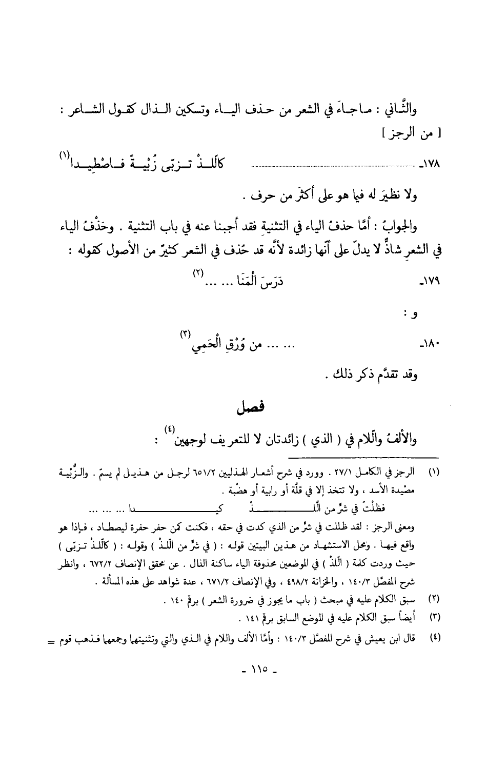 والجوابُ أمَّا حذفُ الْيَاء فِي التثنيةِ فقد أجبنا عَنهُ فِي بَاب التَّثْنِيَة وحَذْفُ الْيَاء فِي الشّعْر شاذٌّ لَا يدلّ على أنَّها زَائِدَة لأنَّه قد حُذف فِي الشّعْر كثيرٌ من الْأُصُول كَقَوْلِه