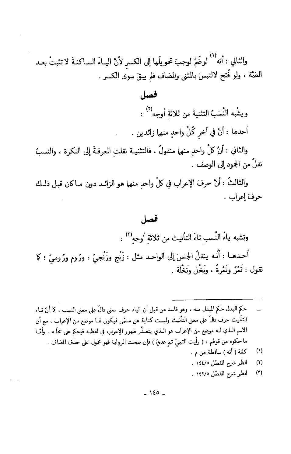 ويشْبه النَّسَبُ التثنيةَ من ثلاثةِ أوجه