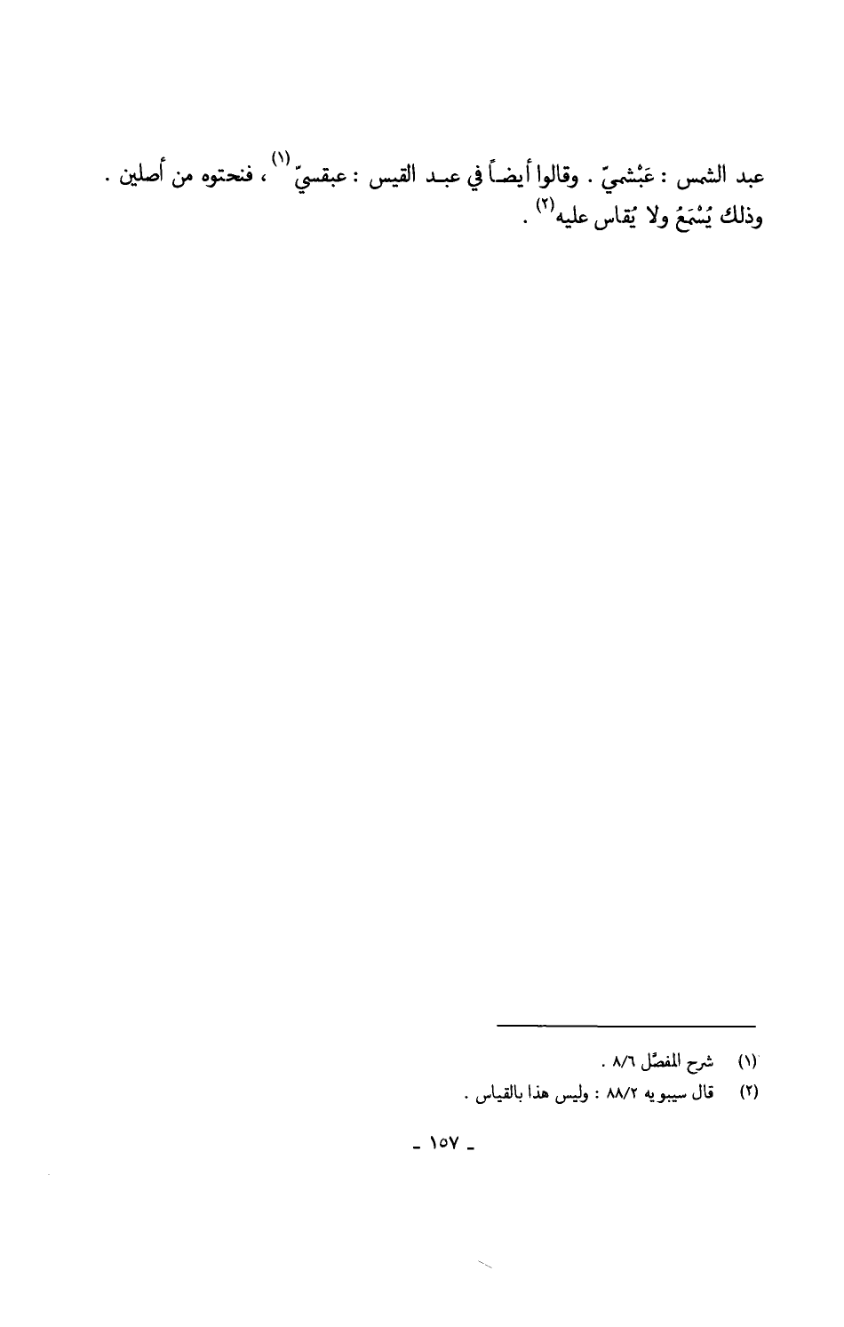 عبد الشَّمْس عَبْشميّ وَقَالُوا أَيْضا فِي عبد الْقَيْس عبقسيّ فنحتوه من أصلين وَذَلِكَ يُسْمَعُ وَلَا يُقاس عَلَيْهِ
