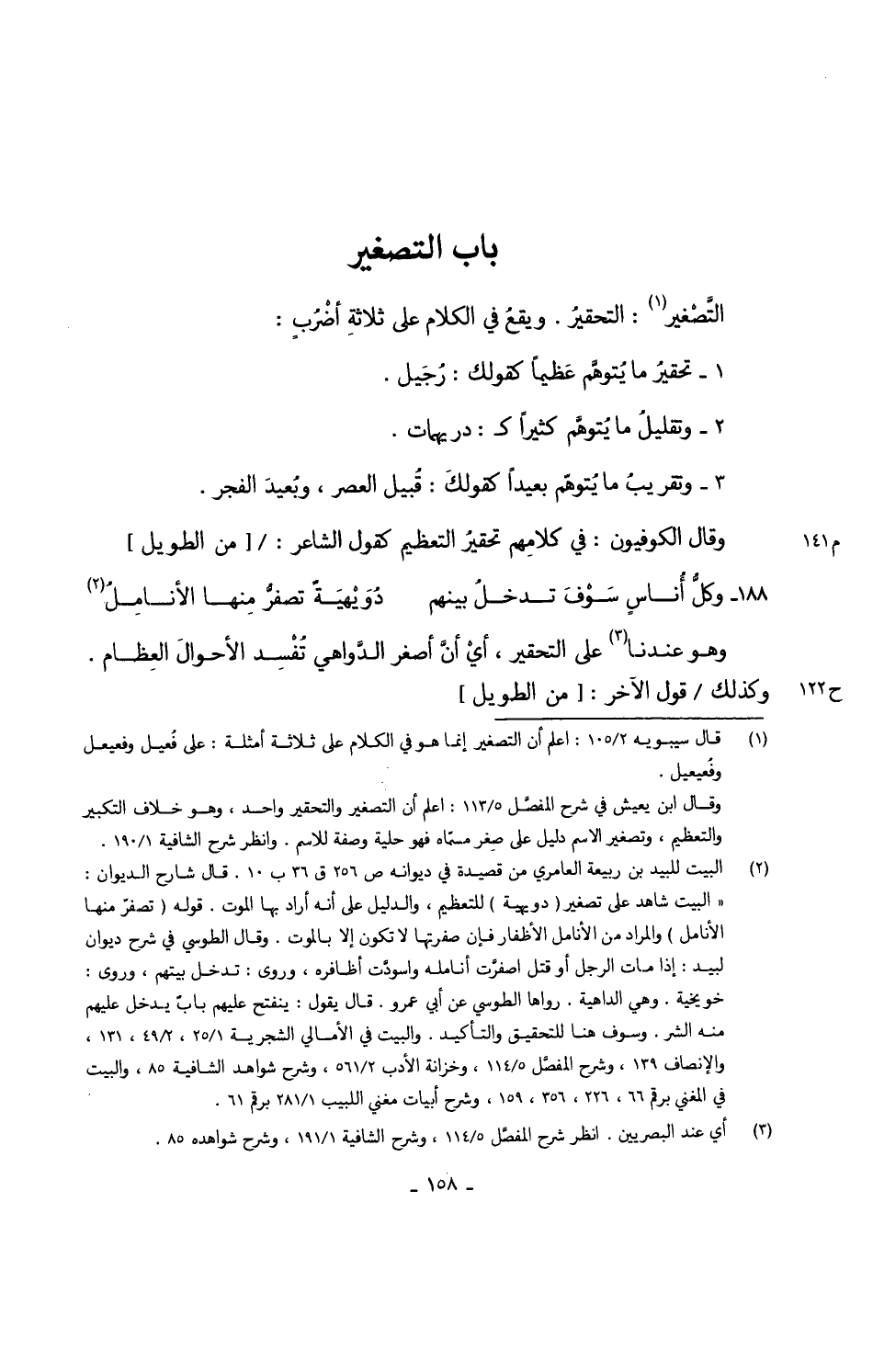 التَّصغير التحقيرُ ويقعُ فِي الْكَلَام على ثلاثةِ أضْرُبٍ