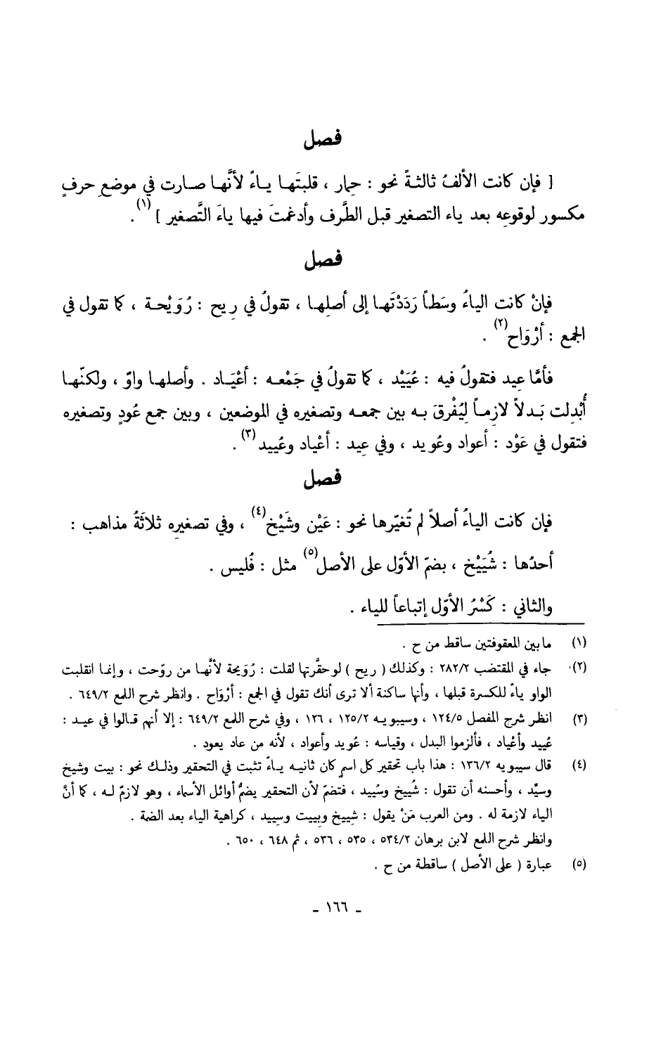 فأمَّا عِيد فتقولُ فِيهِ عُيَيْد كَمَا تقولُ فِي جَمْعه أعْيَاد وَأَصلهَا واوٌ ولكنَّها أُبْدِلت بَدلاً لازِماً لِيُفْرَقَ بِهِ بَين جمعه وتصغيره فِي الْمَوْضِعَيْنِ وَبَين جمع عُودٍ وتصغيره فَتَقول فِي عَوْد أَعْوَاد وعُويد وَفِي عِيد أعْياد وعُييد