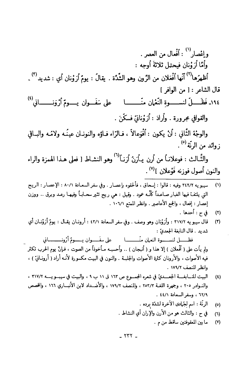 أظهرُها أنّها أفْعَلان من الرَّون وَهُوَ الشِّدَّة يقالُ يومٌ أرَوْنان أَي شَدِيد قَالَ الشَّاعِر من // الوافر //