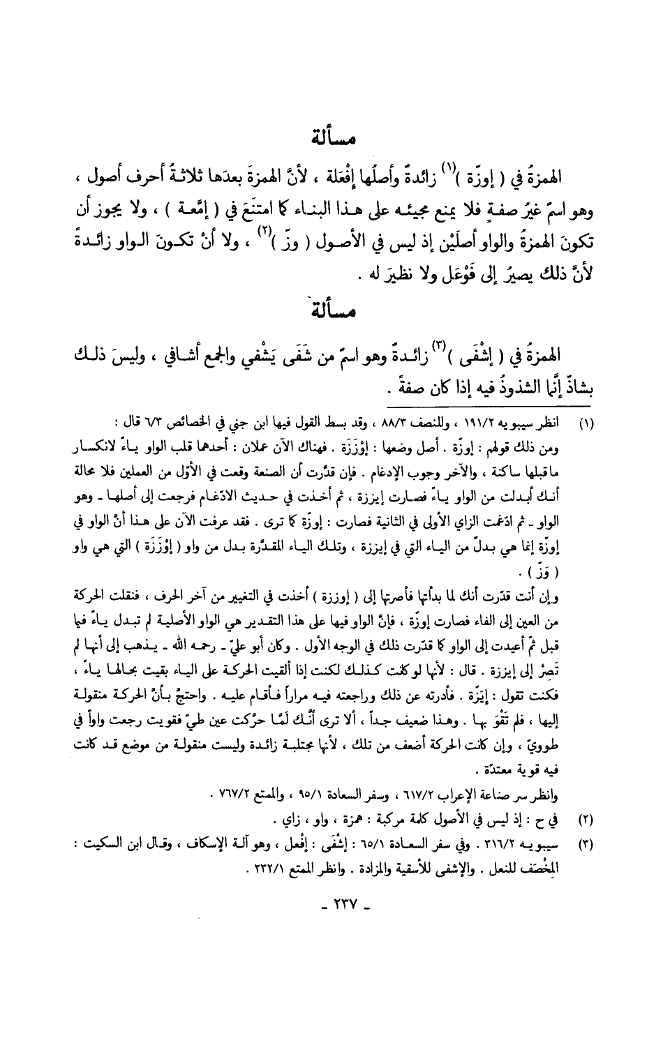 الهمزةُ فِي إشْفَى زائدةٌ وَهُوَ اسمٌ من شَفَى يَشْفي وَالْجمع أشافي وليسَ ذَلِك بشاذّ إنَّما الشذوذُ فِيهِ إِذا كَانَ صفة