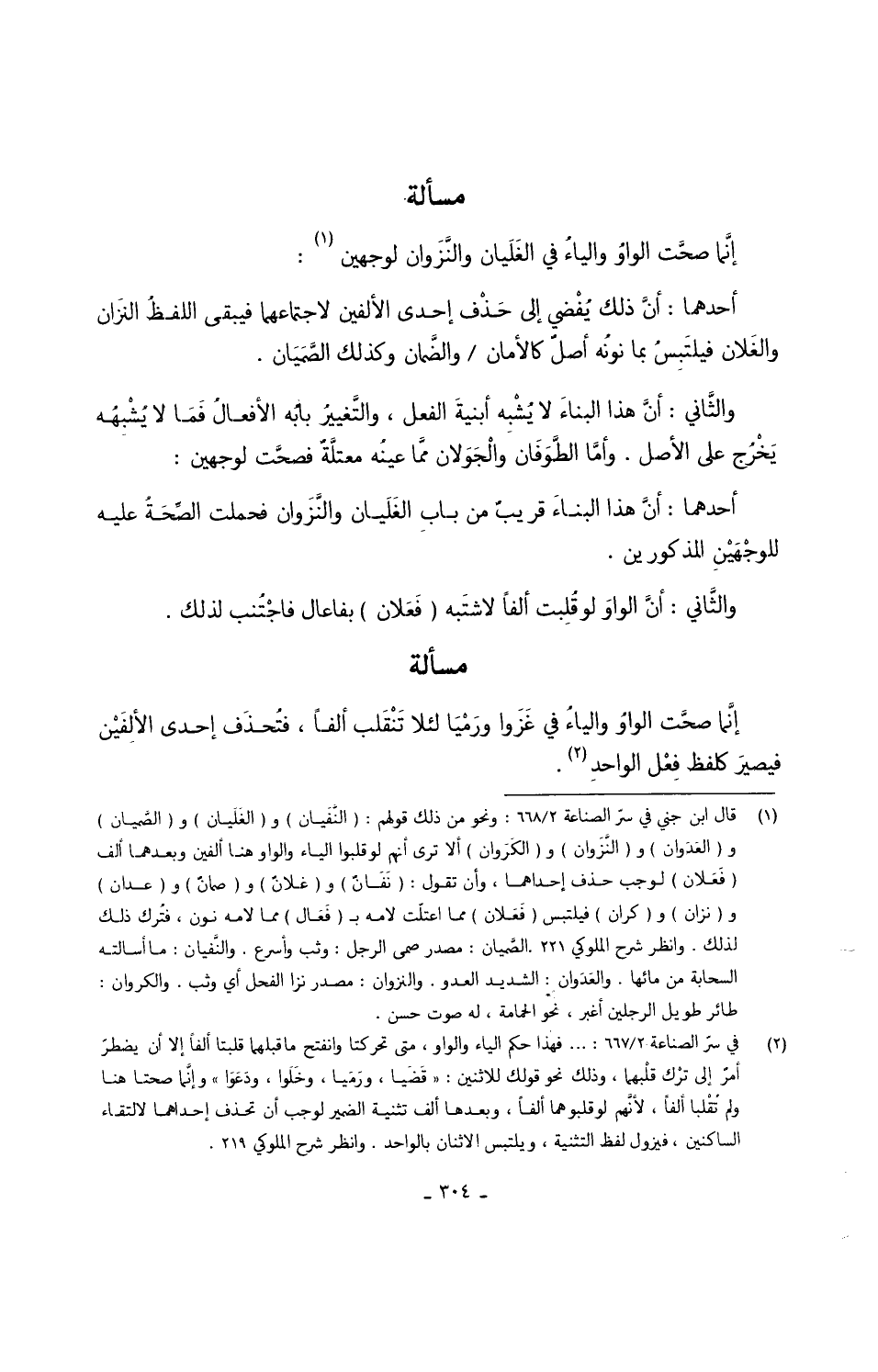 والثَّاني أنَّ هَذَا البناءَ لَا يُشْبِه أبنية الْفِعْل والتَّغييرُ بابُه الأفعالُ فَمَا لَا يُشْبِهُه يَخْرُج على الأَصْل وأمَّا الطَّوَفَان والْجَوَلان ممَّا عينُه معتلَّةٌ فصحَّت لوَجْهَيْنِ
