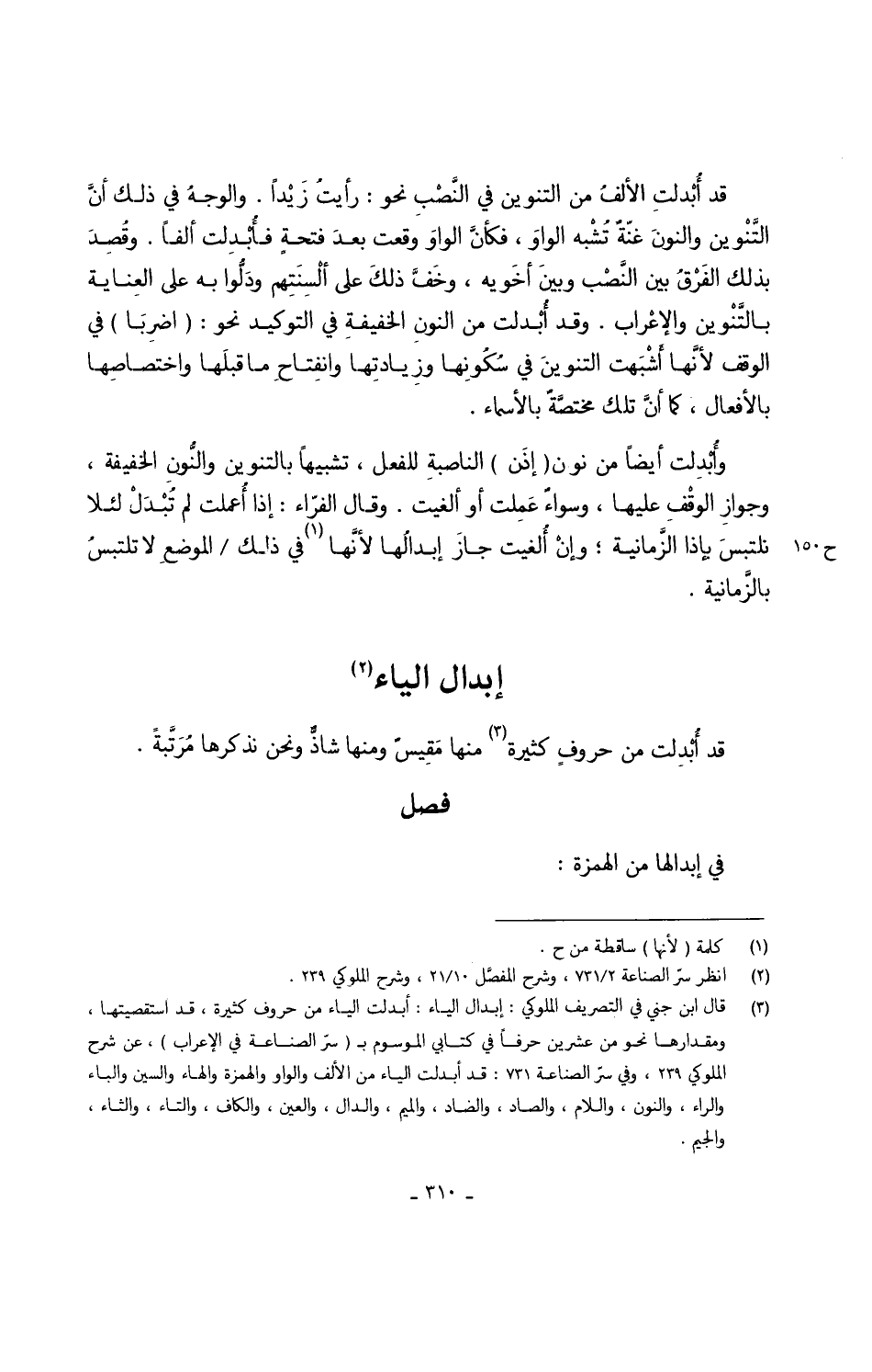 قد أُبْدلتِ الألفُ من التَّنْوِين فِي النَّصْبِ نَحْو رأيتُ زَيْداً والوجهُ فِي ذَلِك أنَّ التَّنْوين والنونَ غنّةٌ تُشْبه الواوَ فكأنَّ الواوَ وَقعت بعدَ فتحةٍ فأُبْدِلت ألفا وقًصِدَ بذلك الفَرْقُ بَين النَّصْب وبينَ أخَويه وخَفَّ ذلكَ على ألسِنَتِهِم ودَلُّوا بِهِ على الْعِنَايَة بالتَّنْوين والإعْراب وَقد أُبْدلت من النونِ الخفيفةِ فِي التوكيد نَحْو اضربَا فِي الْوَقْف لأنَّها أَشْبَهت التنوينَ فس سُكُونِها وزِيادتِها وانفِتاح مَا قبلَها واختصاصِها بالأفعال كَمَا أنَّ تِلْكَ مختصّةٌ بالأٍسماء